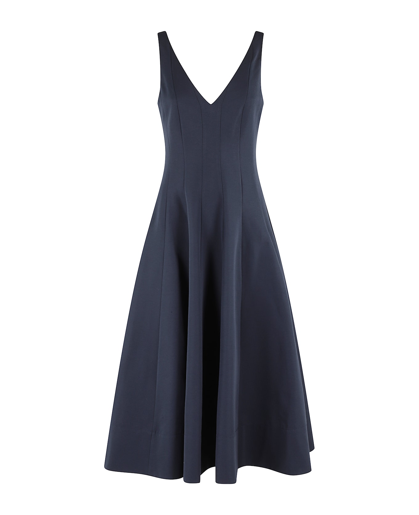 Marieta dress - Staud - Blue color - Grosgrain fabric - V-neck - Straps - Flared midi skirt - Back zipper closure - Regular fit