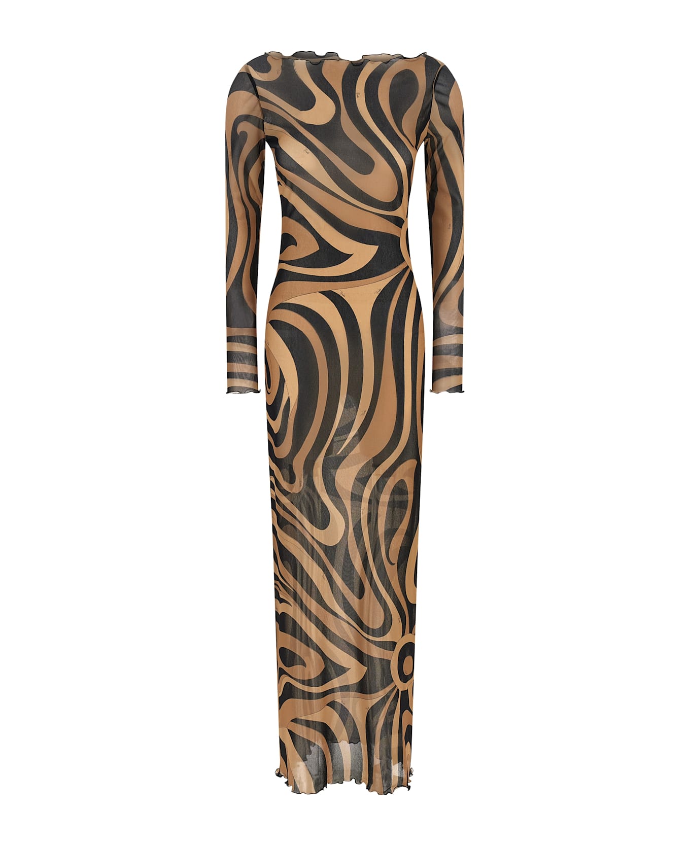 Long dress in semi-transparent tulle with all-over 'Marmo' print, boat neck, straight sheath dress with tight fit, long sleeves. This product, like many other Pucci items, is made with an all-over print that falls differently on each garment The product shipped may differ from the one in the picture.