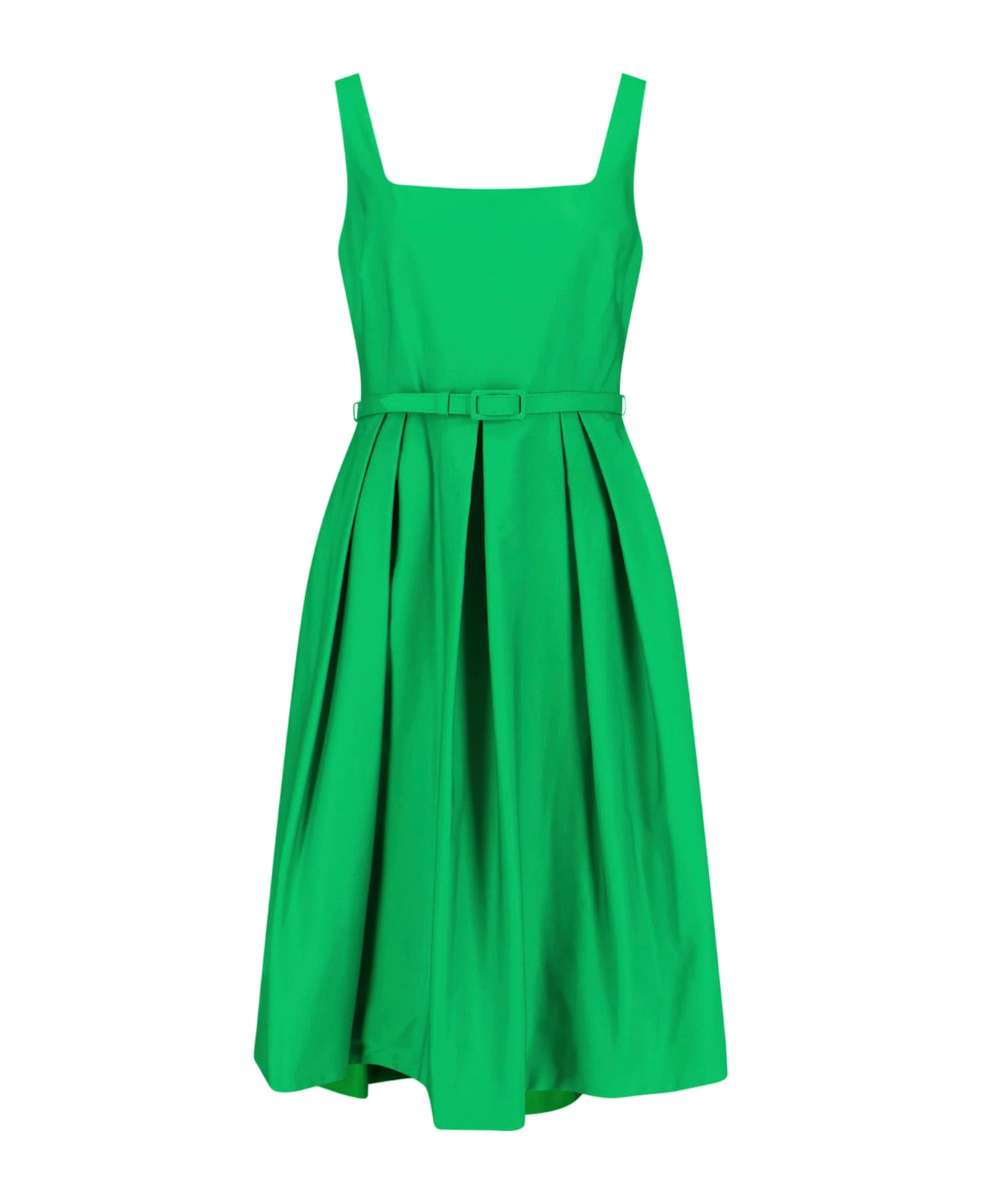 Lauren Ralph Lauren midi dress in green faille with square neckline, shoulder straps, adjustable belt at the waist, back zip closure, pleated skirt, straight hem. Composition: 100% Polyester
