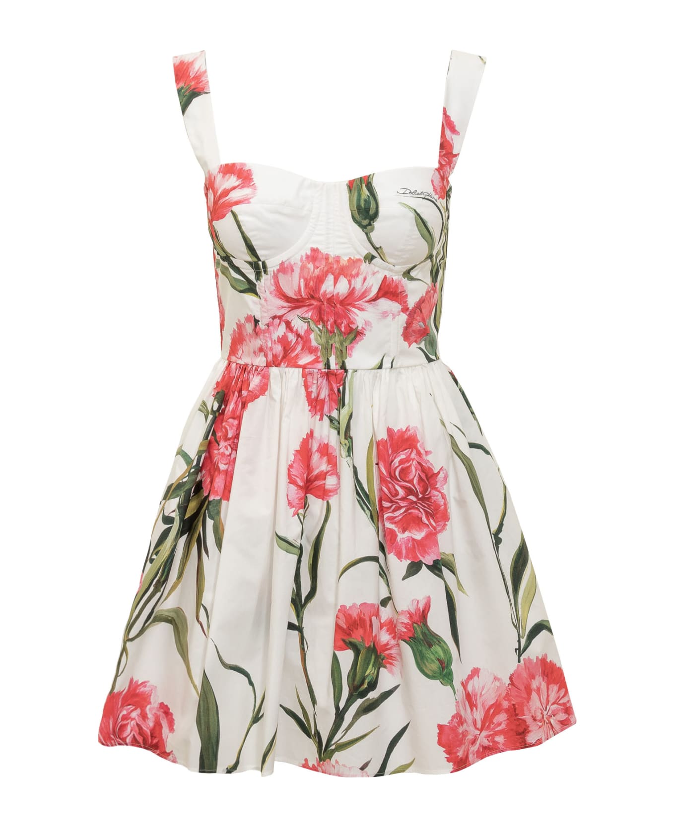 Short dress. Straps. Sweetheart neckline. Zip closure on the back. All over floral print. Composition: 100% Cotton