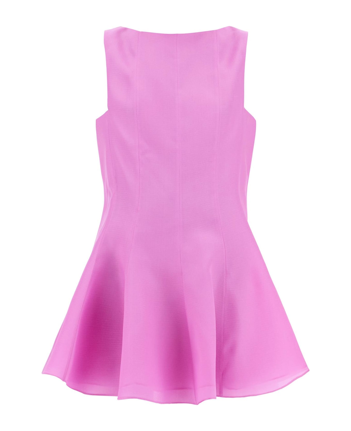 Made from pure silk gazar lined with organza, this Khaite mini dress stands out for its unique panel construction that creates a lively straight silhouette on the bodice and flares at the bottom. It features a boat neckline, invisible back zip closure, and square armholes. The model is 177 cm tall and wears a US size 4. Composition: 100%SE
