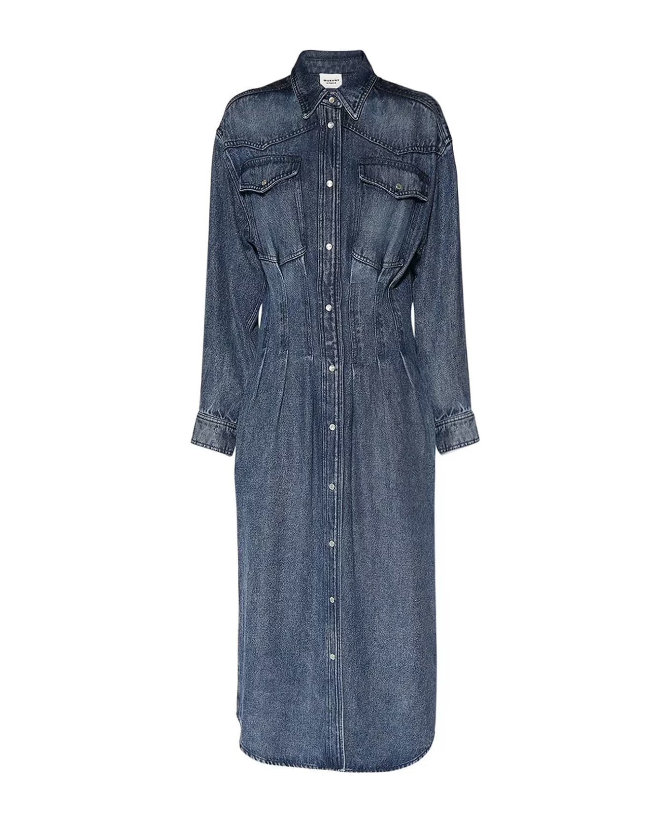 Denim chemisier dress with mother of pearl buttons