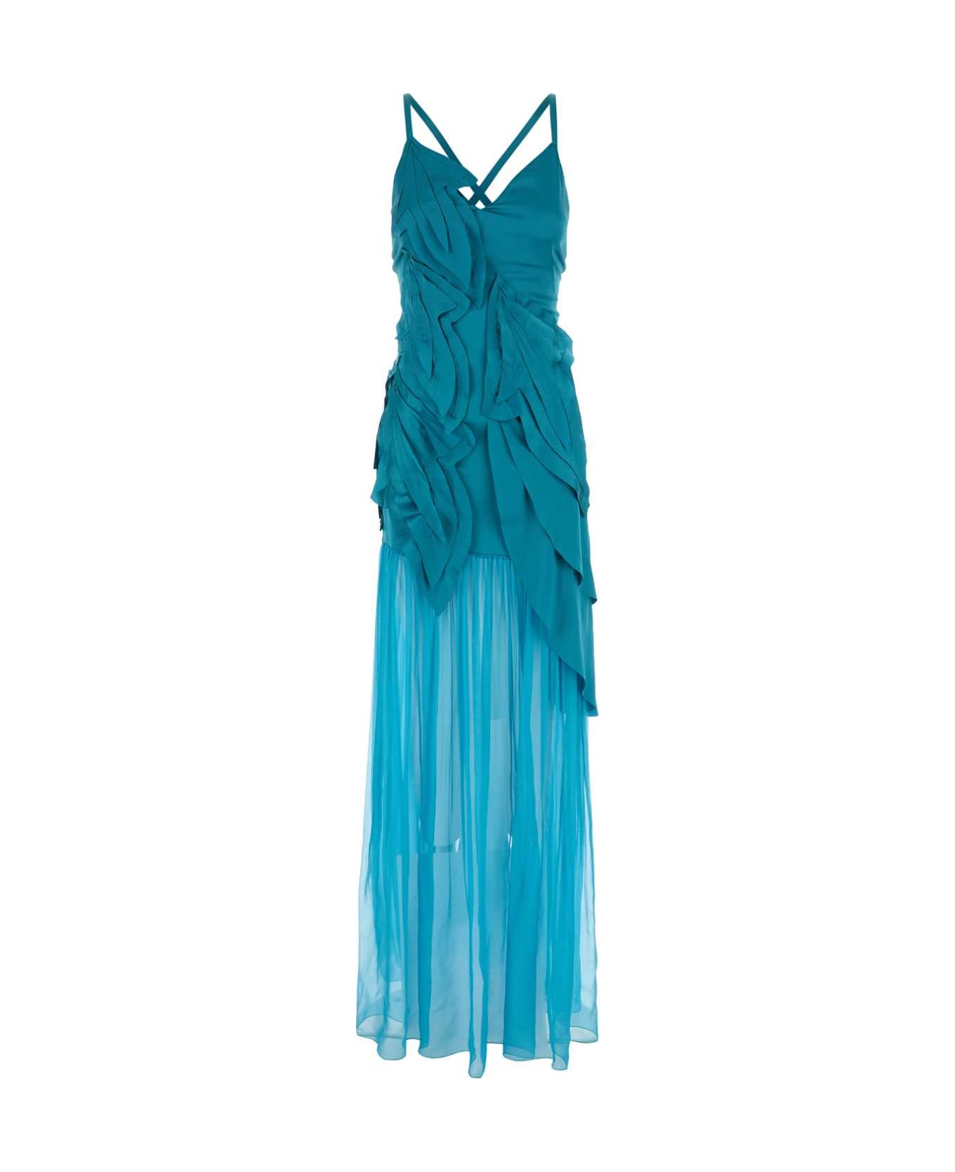 Turquoise Crepe Long Dress