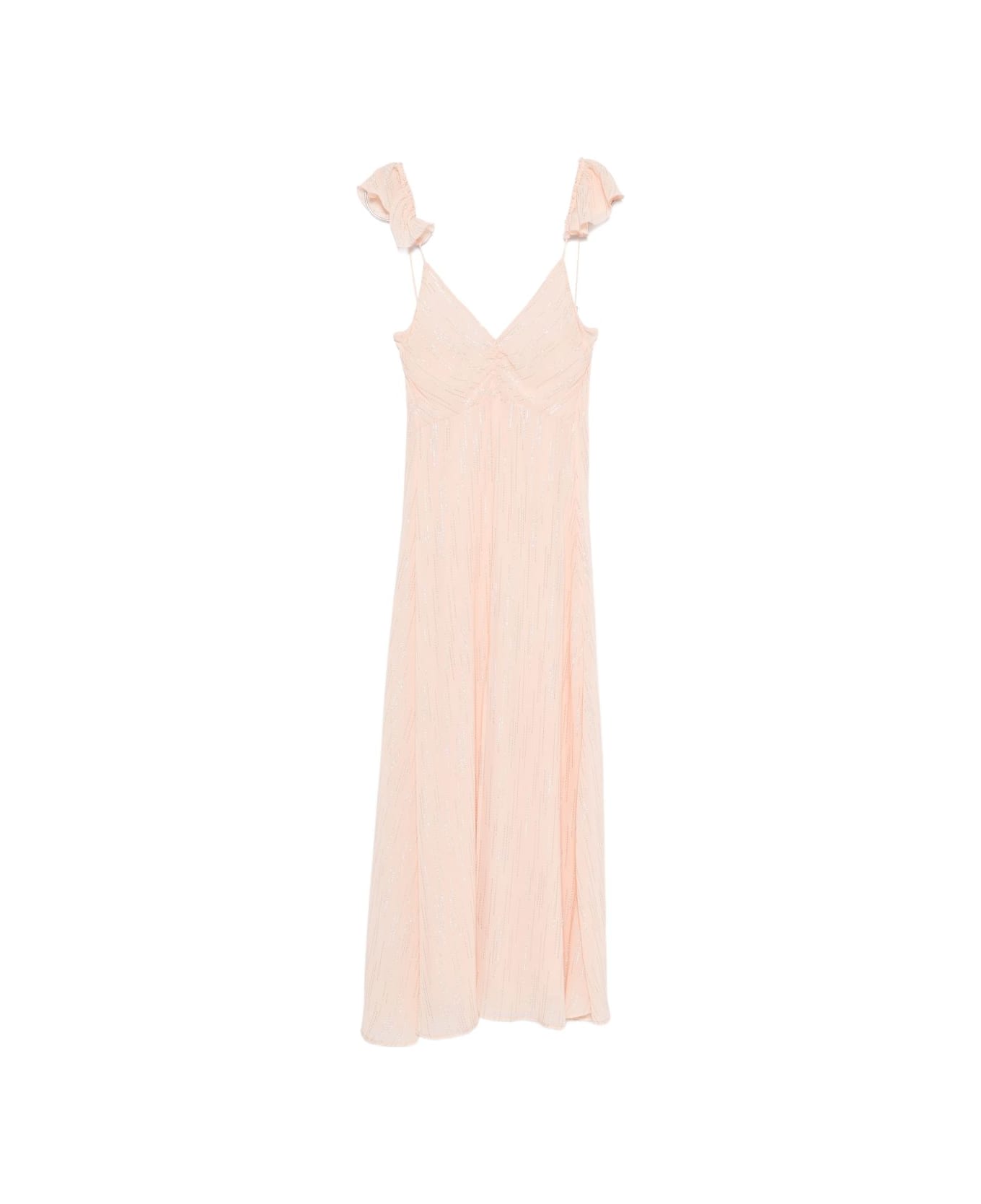 light pink ruffled sleeves V-neck thin shoulder straps textured detail