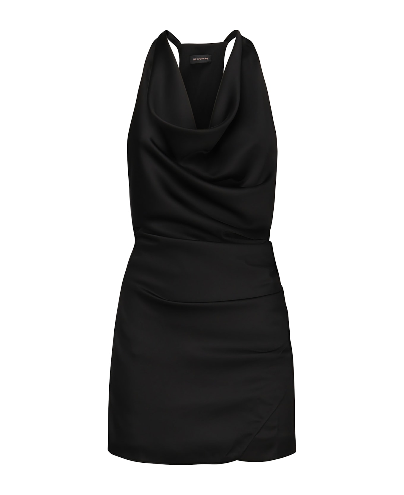 -Verushka mini dress made of satin -American neckline -Side closure with invisible zip and hook -Size shown in photo is 38 -Colour: Black