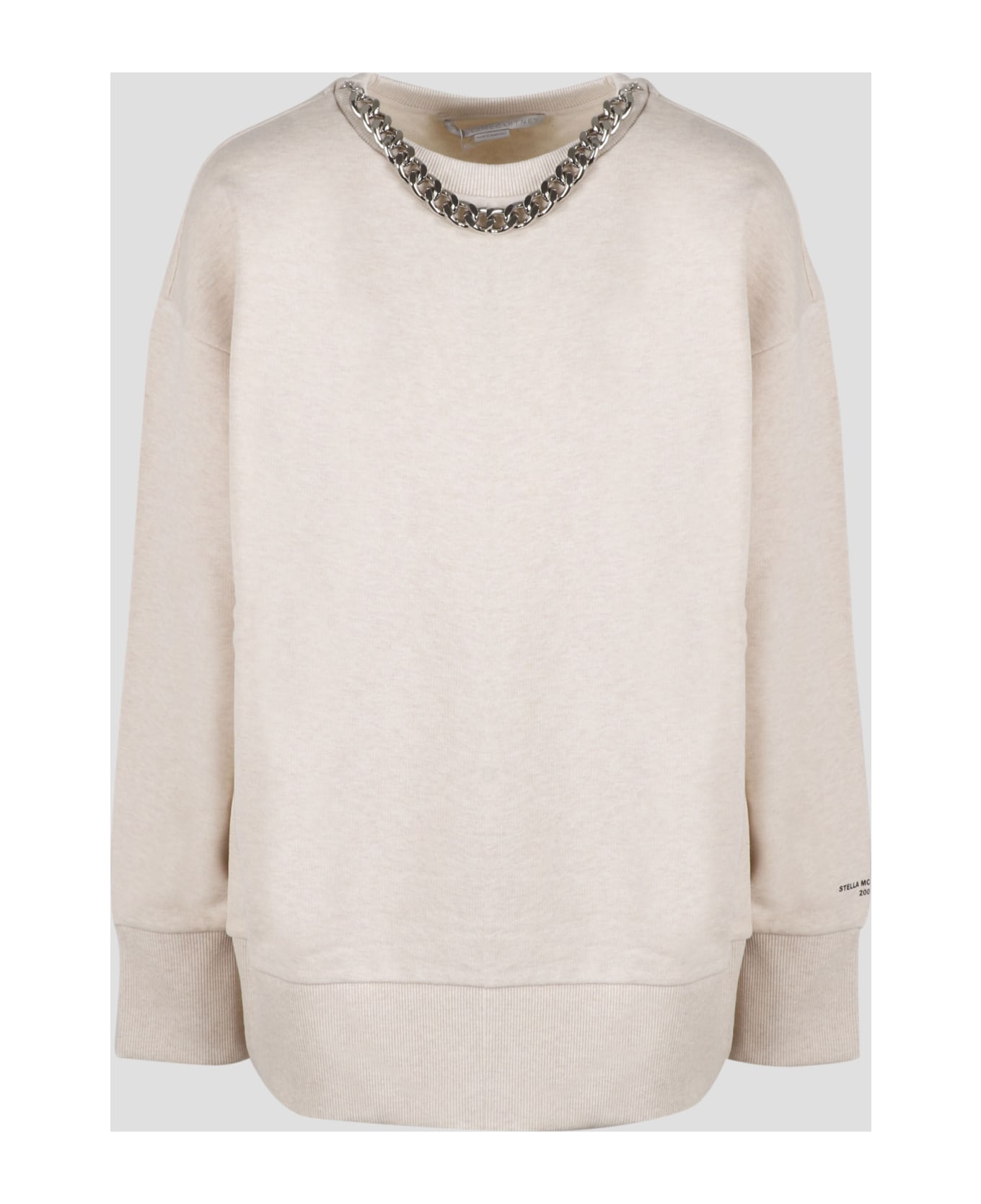 Stella McCartney crewneck sweatshirt in cotton jersey embellished with the iconic diamond-cut chain on the neckline. - SS23