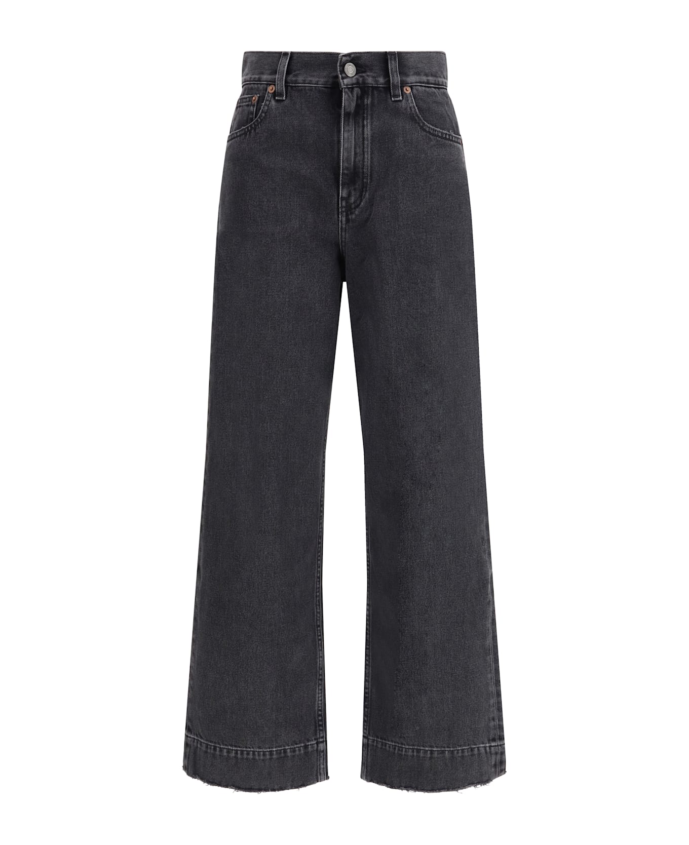 The high-waisted cropped denim jeans by chloé combine contemporary ease with timeless appeal. cut from premium denim, they feature a flattering high-rise waist, ankle-length silhouette, and classic five-pocket design. a logo-engraved button and zip fastening complete the front, while a signature chloé leather patch on the back adds a refined finishing touch.