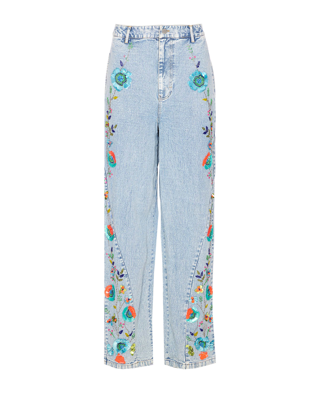 Essentiel Antwerp navy jeans, button and zip closure, pockets, sequins details, regular fit Composition: 100% Cotton, 60% Cotton, 40% Polyester, 100% Acrylic, 100% Glass