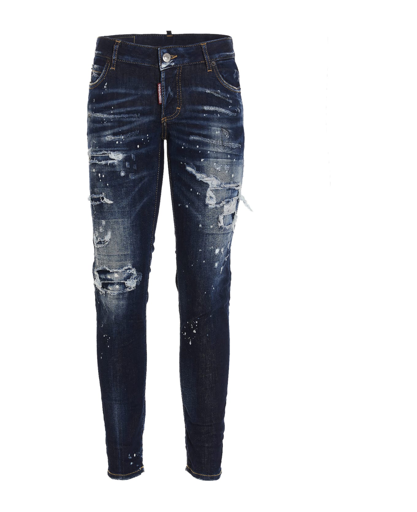'Jennifer Cropped' five-pocket denim jeans with a button closure, all over paint and destroyed details, washed effect. Short crotch, tight bottom.