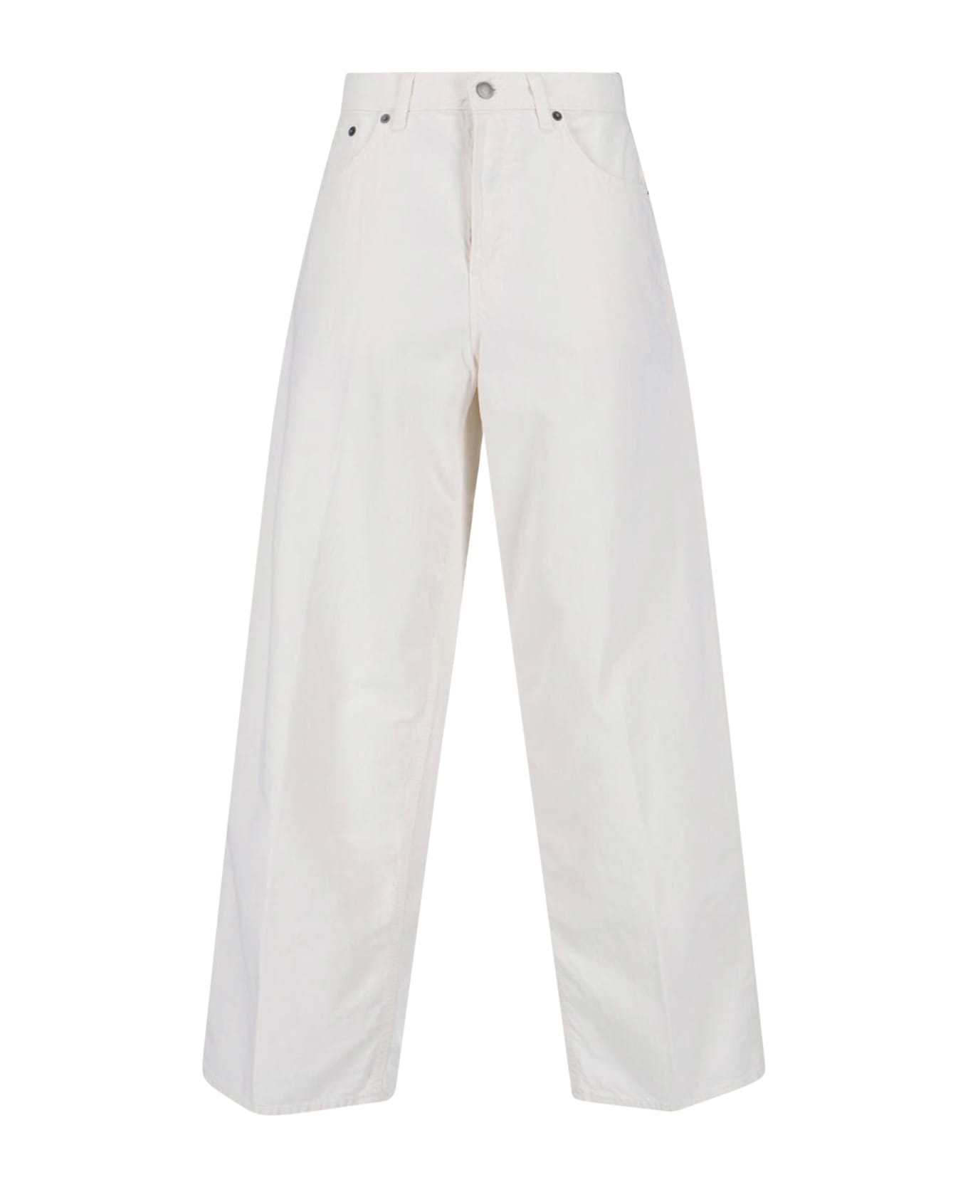 Wide jeans in cotton and linen Haikure in white denim, mid waist, button closure, five pocket design, back patch, wide leg. Composition: 85% Cotton, 15% Linen