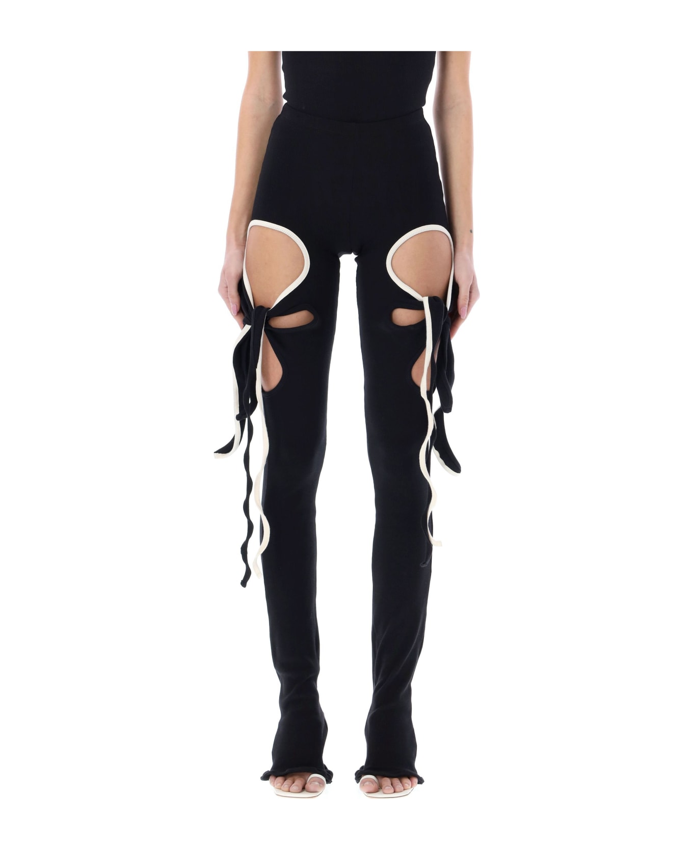 Cotton Otto Lounge Rib Wrap Leggings By Ottolinger. Featuring: Elastic Waistband Wide Cut-outs At Thighs With Self-tie Wraps Scalloped Hem Model Is 1,72 M Tall And She Is Wearing Size Xs
