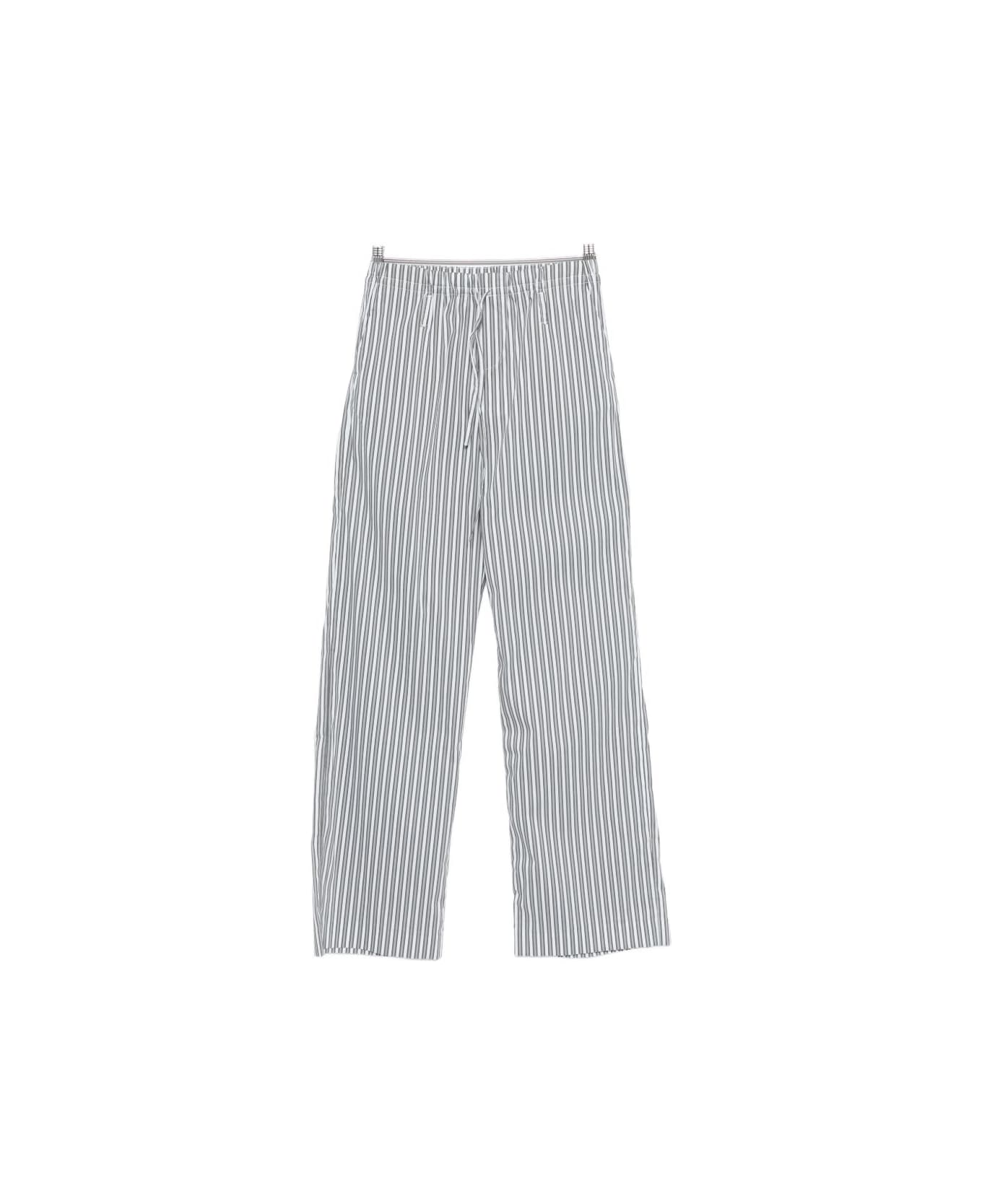 grey and blue striped pattern drawstring fastening elasticated waistband
