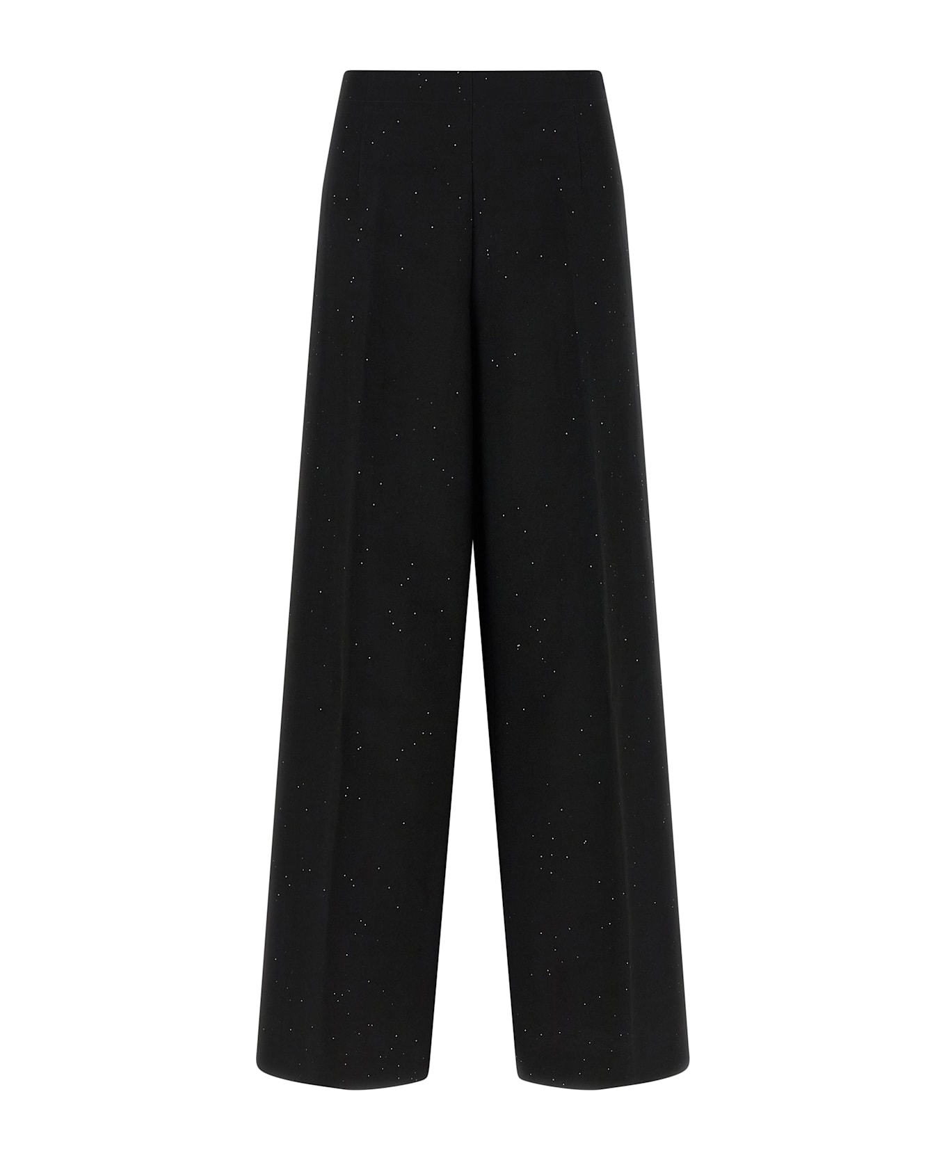 Viscose and linen blend pants with tone-on-tone micro sequin application, wide and straight leg, elastic back waistband, side zip closure. Composition: 66% vi, 20% li, 14% pa