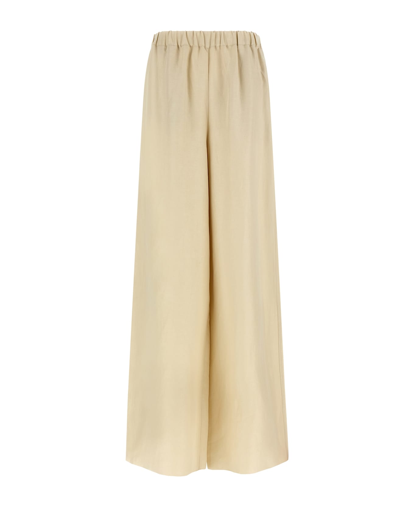 'MxmOro' pants in washed linen and silk twill, wide and straight leg, elastic waistband, front French pockets. Composition: 63% linen, 37% silk