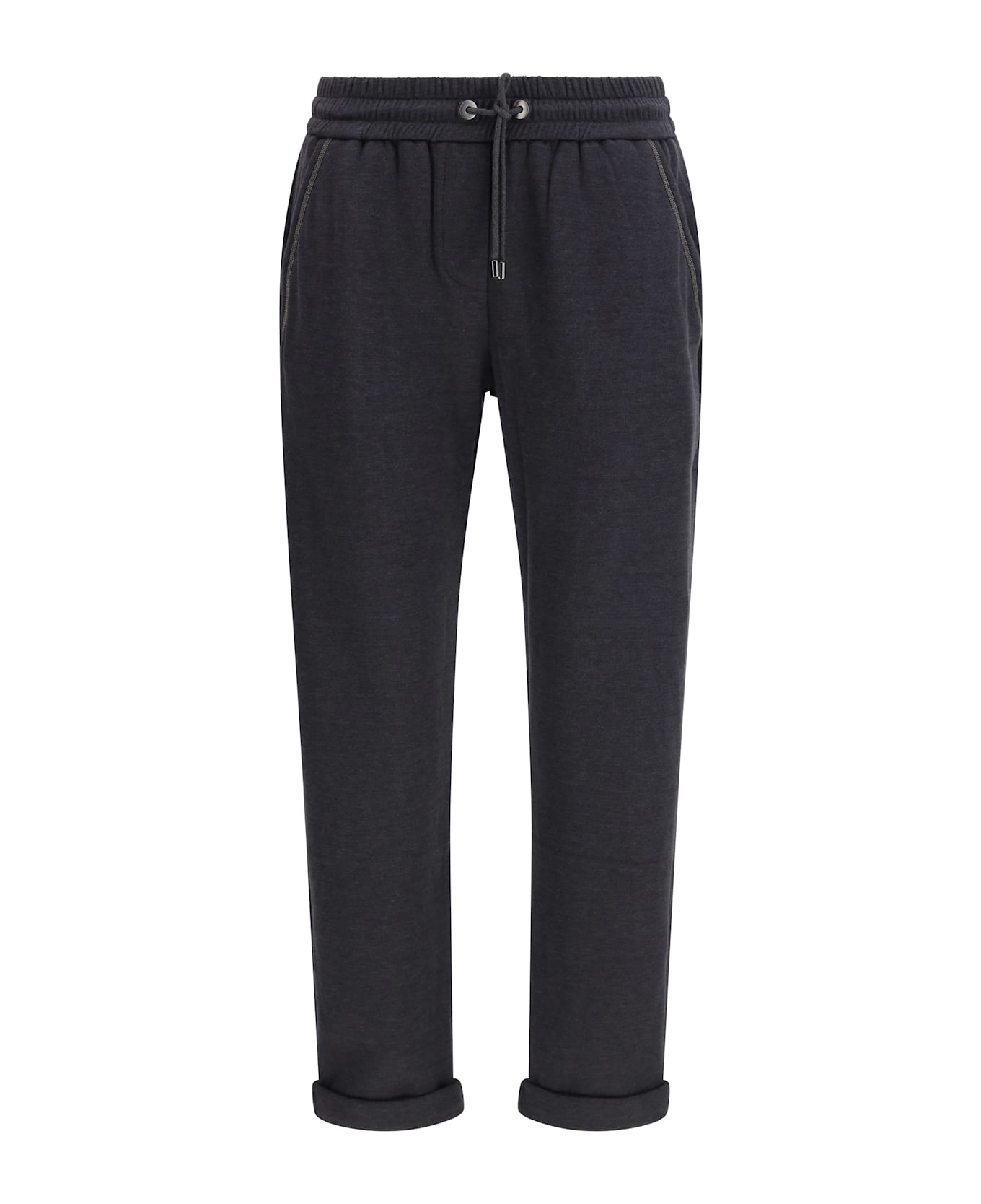 Brunello cucinelli's cotton pants are an elegant and comfortable piece, featuring an elasticated waistband adjustable with a drawstring, which offers a personalized fit. the two side slit pockets, embellished with sparkling jewels, add a touch of discreet luxury. the cuffed hem adds a modern detail, while the monochrome design ensures versatility and simplicity. with a regular fit, these trousers combine comfort and style, perfect for a casual-chic look.