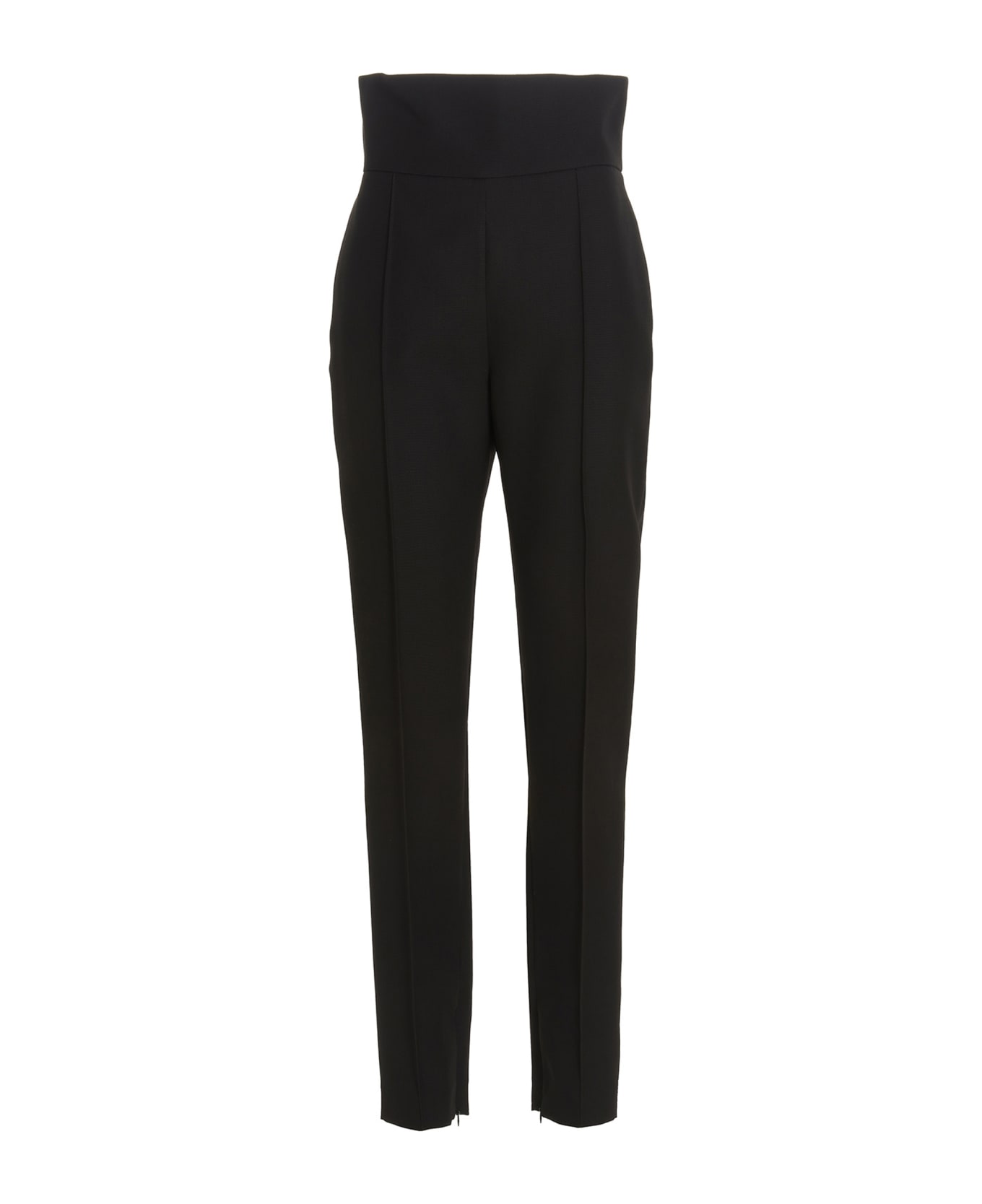 Stretch skinny fabric pants with ankle zip and a high waist.