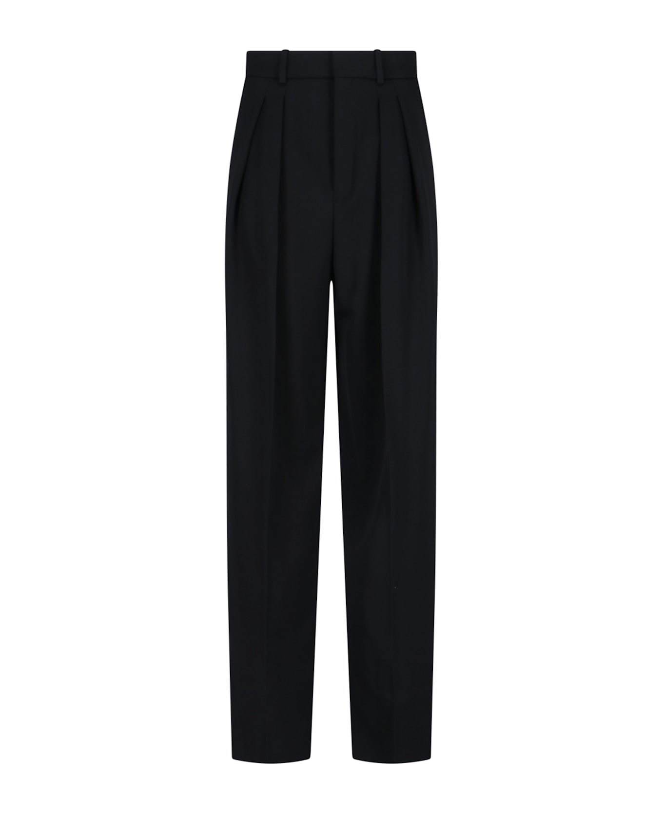 Saint Laurent wool wide black trousers with high waist, belt loops, hook and zip closure, front pin tucks, two side pockets, two back button welt pockets, wide leg. Composition: 100% Wool