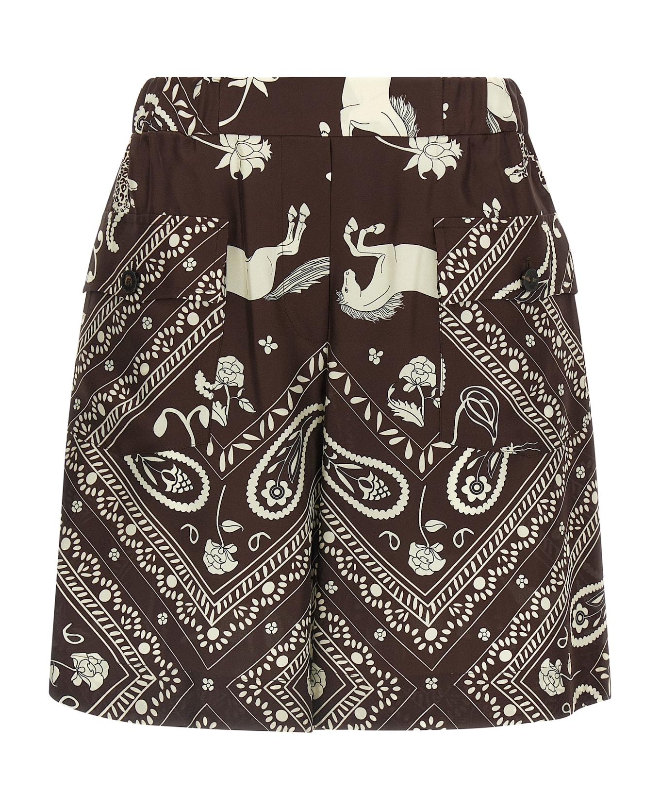 'Bandana' print silk bermuda shorts, elastic back waistband, trompe l'oeil flap, pockets.