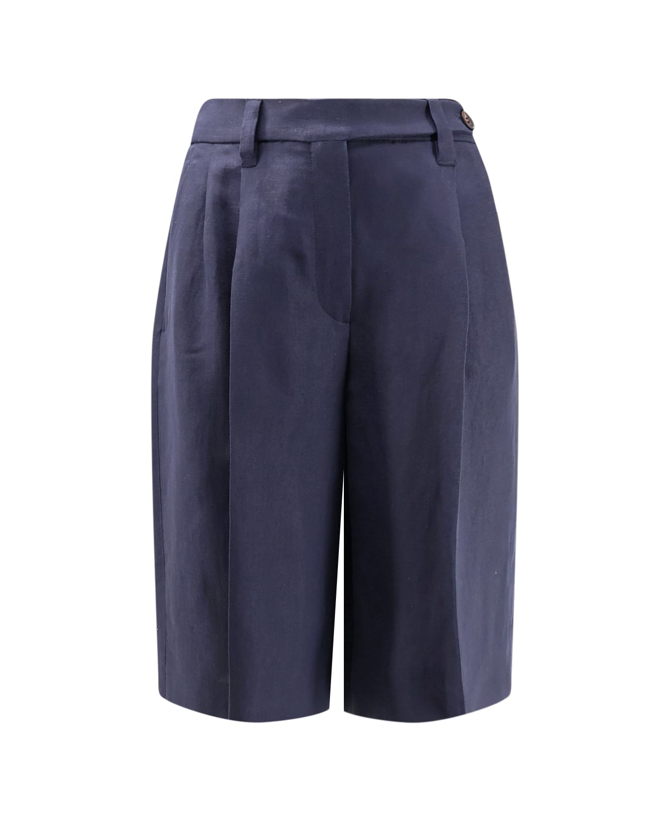 Zip and button closure Pinces detail Slant pockets on the front Welt pockets with button Made in Italy 72% viscose 28% linen SKU: MH126P9183C4224