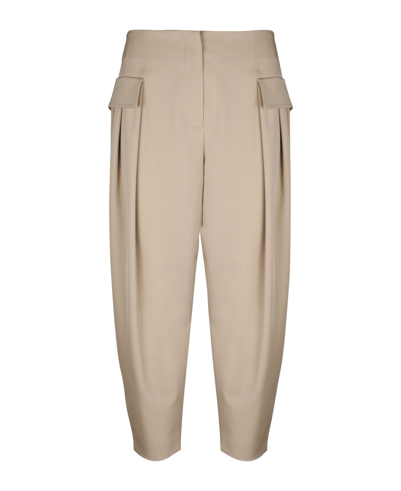 Trousers with double fold on the front and low crotch by Stella McCartney. Pants with closure with hooks and hidden zip.