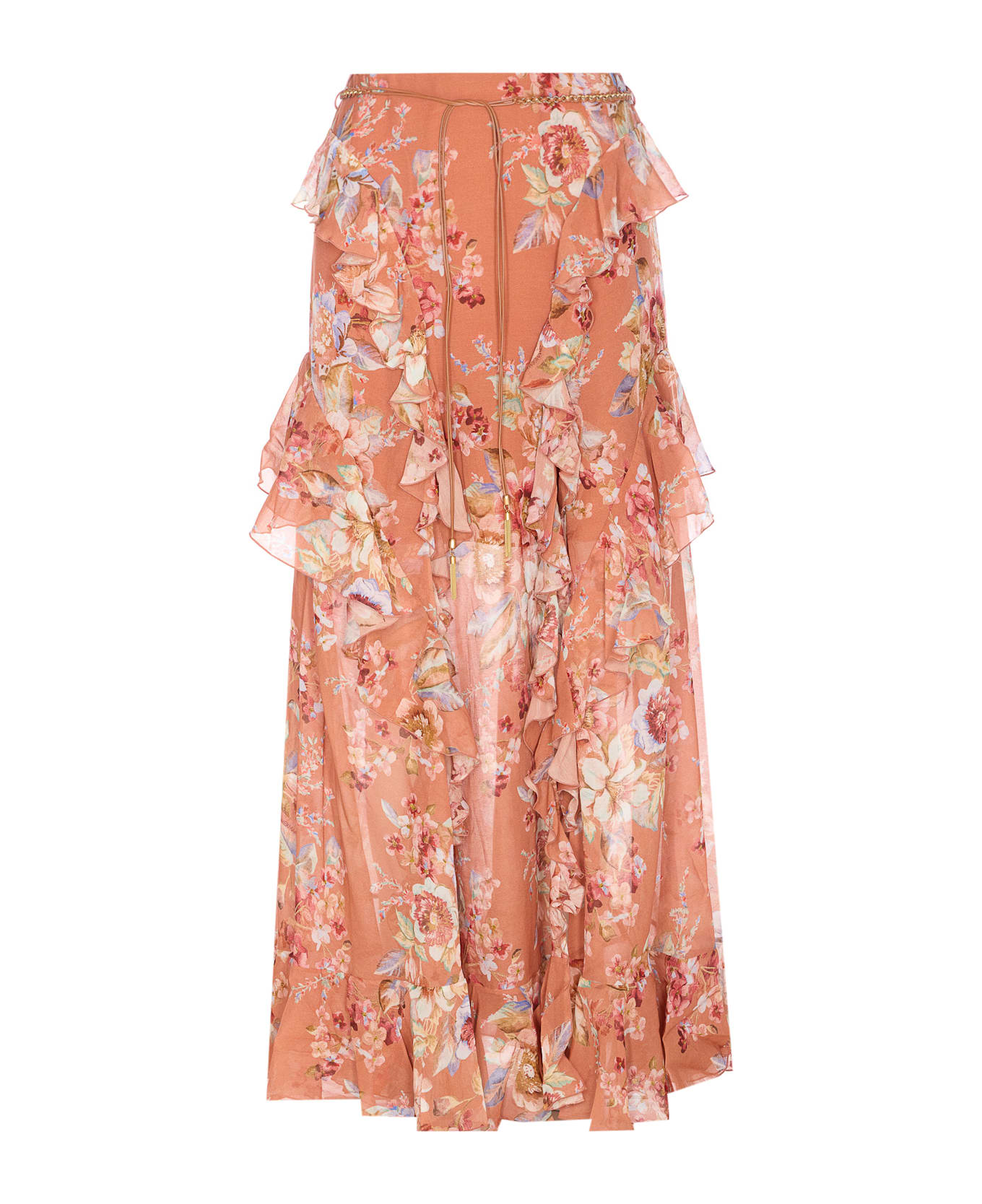 Zimmermann cinnamon Awaken ruffle skirt, zip and hook closure, belt on waist, ruffled Composition: 77% Cotton, 23% Silk , 100% Viscose