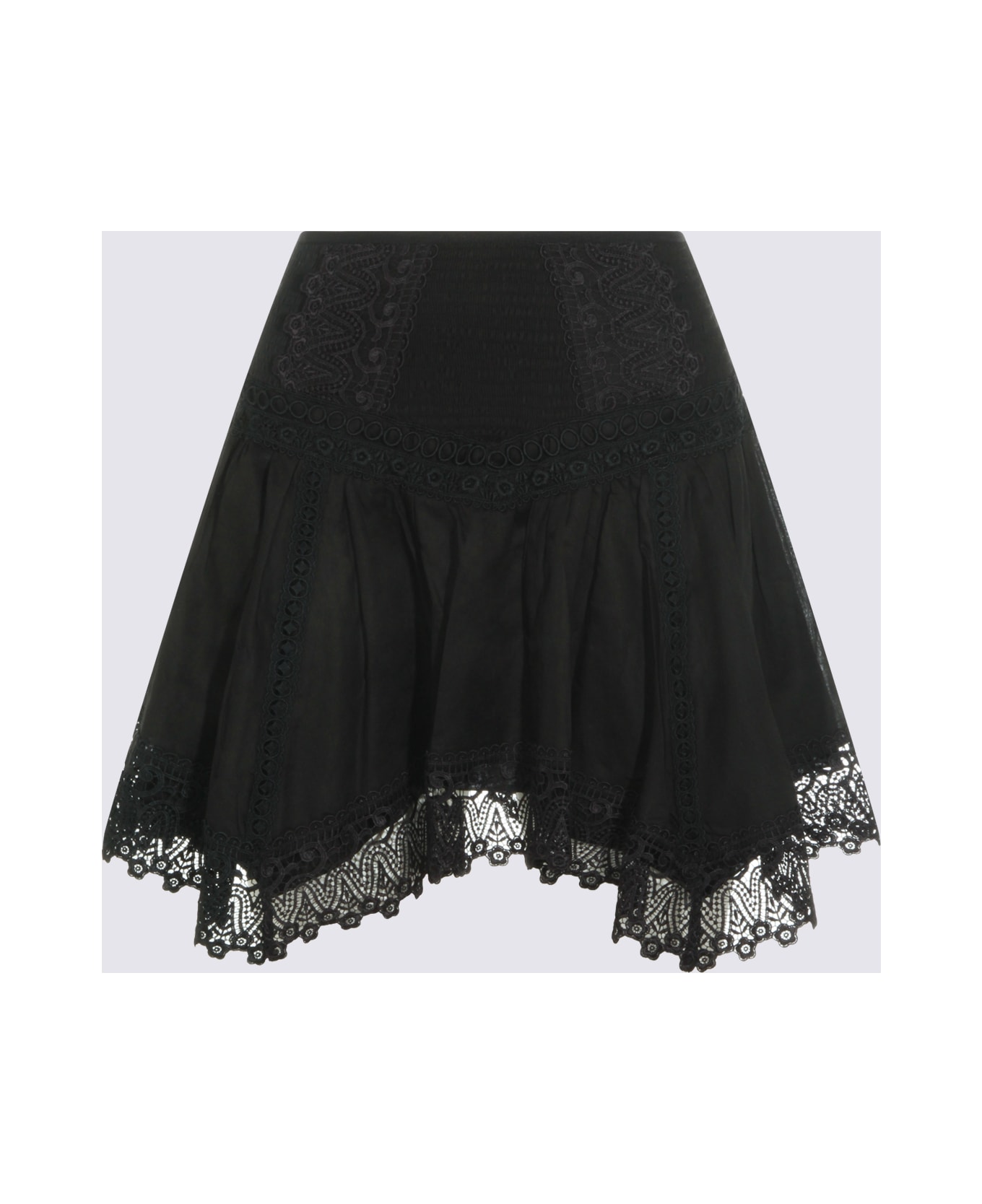 Black cotton skirt from Charo Ruiz Ibiza featuring elasticated waistband, lace details and mini lenght.