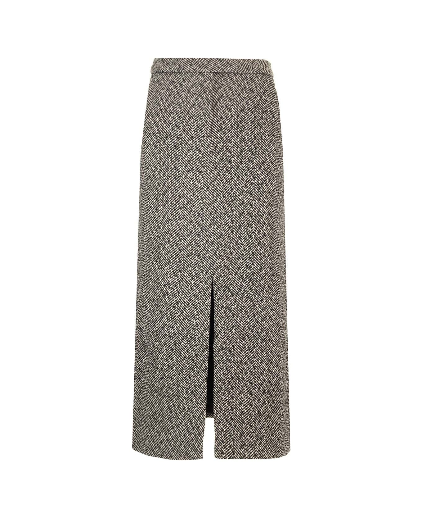 Herringbone Wool Midi Skirt