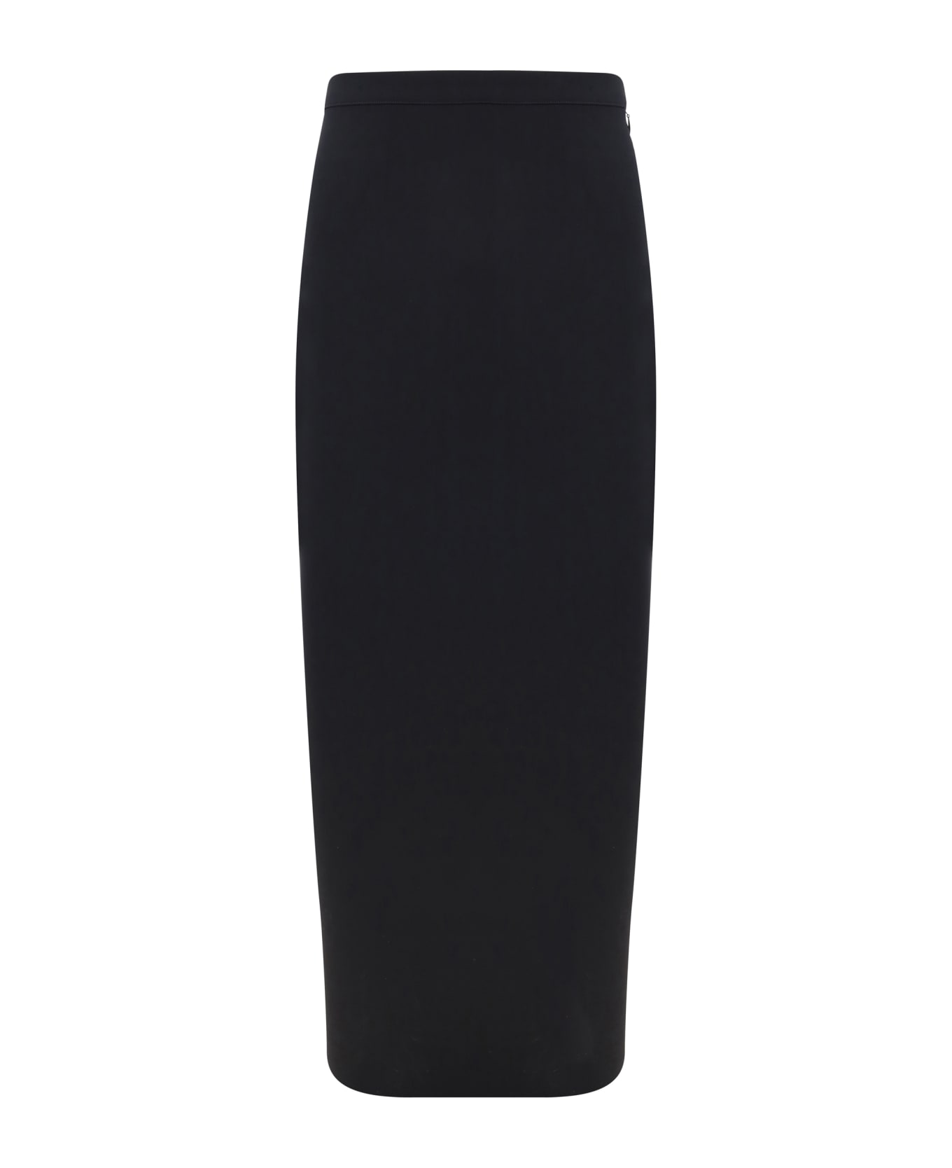 Fluid skirt by lanvin, midi length, side zipper closure, two back welt pockets with contrasting button for closure, deep back slit, sheath design. Composition: 37% % Polyester, 63% % Triacetate