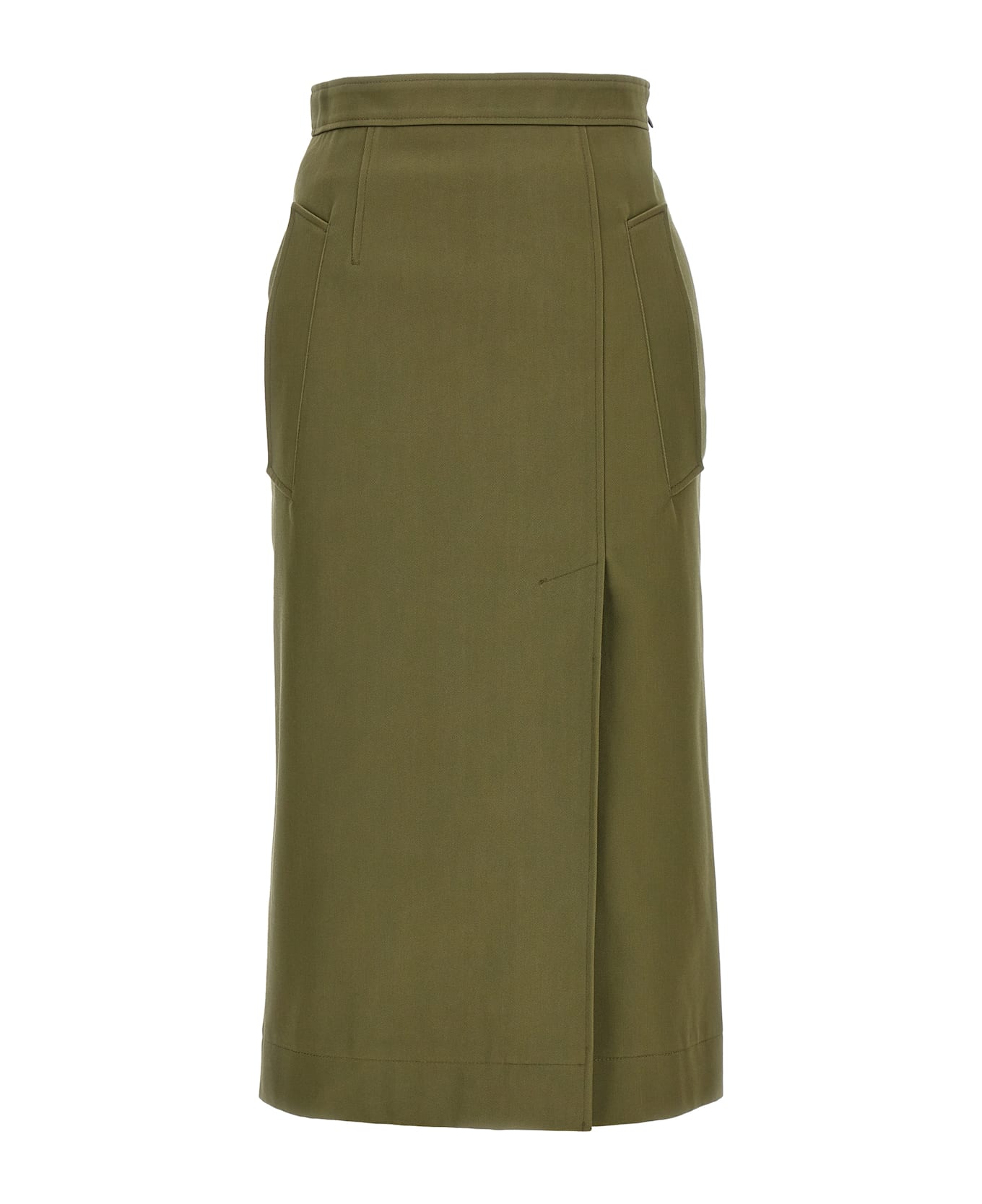Cotton gabardine skirt, pockets, front split, side zip closure, back chain detail. Composition: 100% cotton
