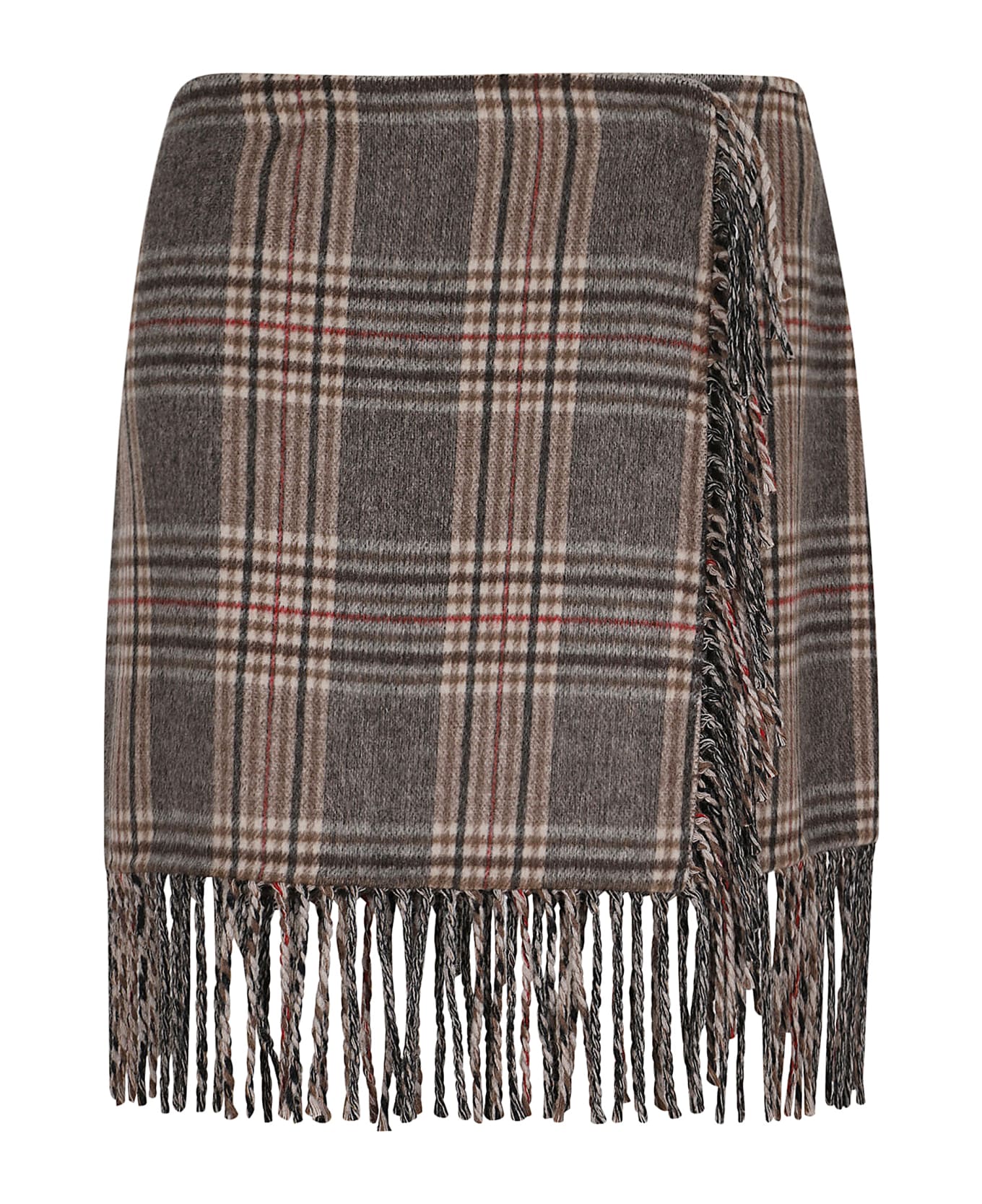 Wool skirt BY PAROSH. Button closure. Featuring a check pattern and fringes along the profiles.
