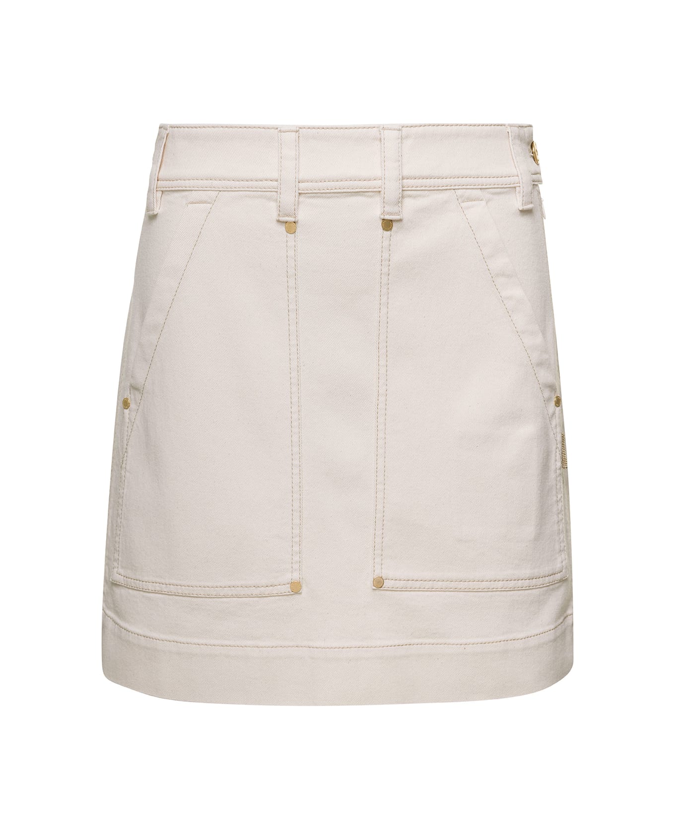 MiniskirtBelt loopsSide pocketsRear pockets White denim Cotton Regular fit Composition: