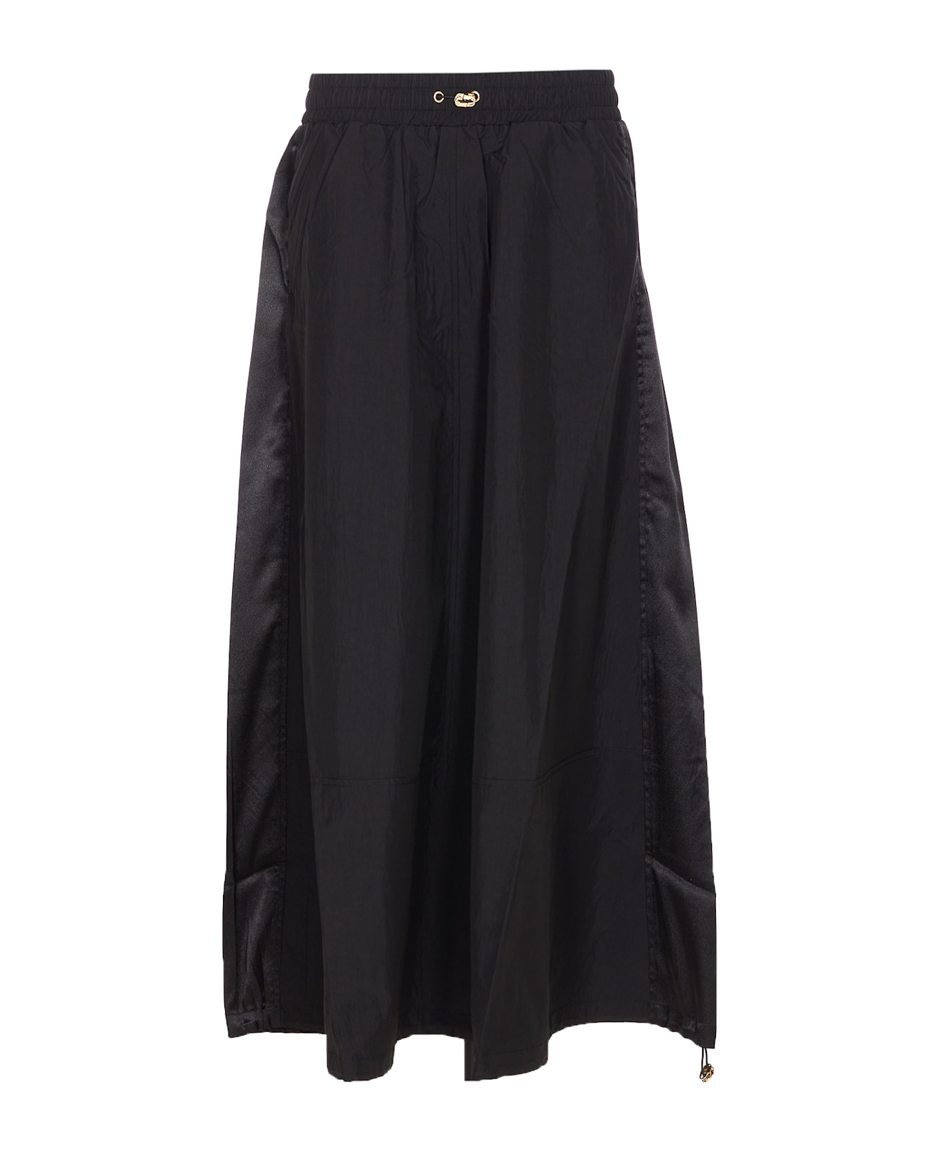 Liu Jo black skirt, elasticized on waist, coulisse closure on waist, lateral pockets, wide fit Composition: 60% Polyester, 40% Polyamide, 100% Polyester