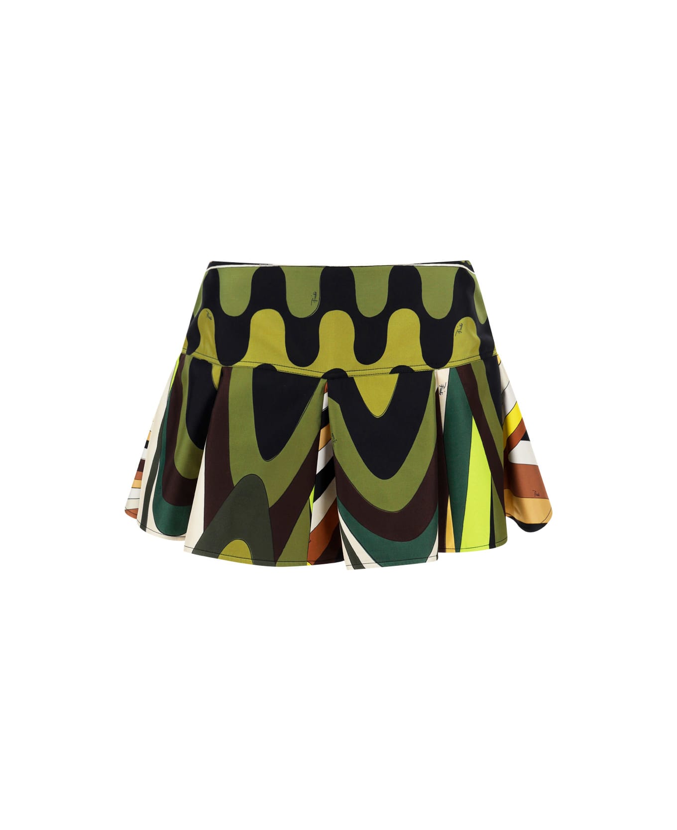 Silk mini skirt by emilio pucci, iconic all-over printed pattern of the brand, hidden side zipper closure, soft pleating on the skirt. Composition: 100% % Silk