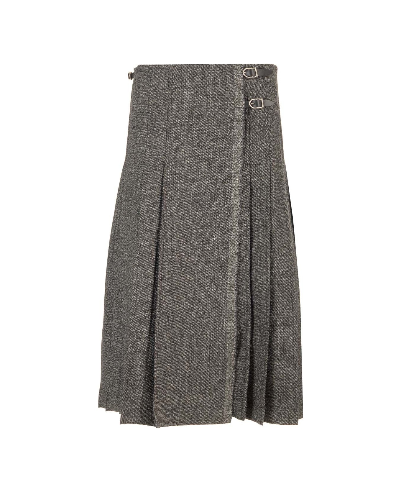 Pleated Midi Kilt Skirt Melange Black