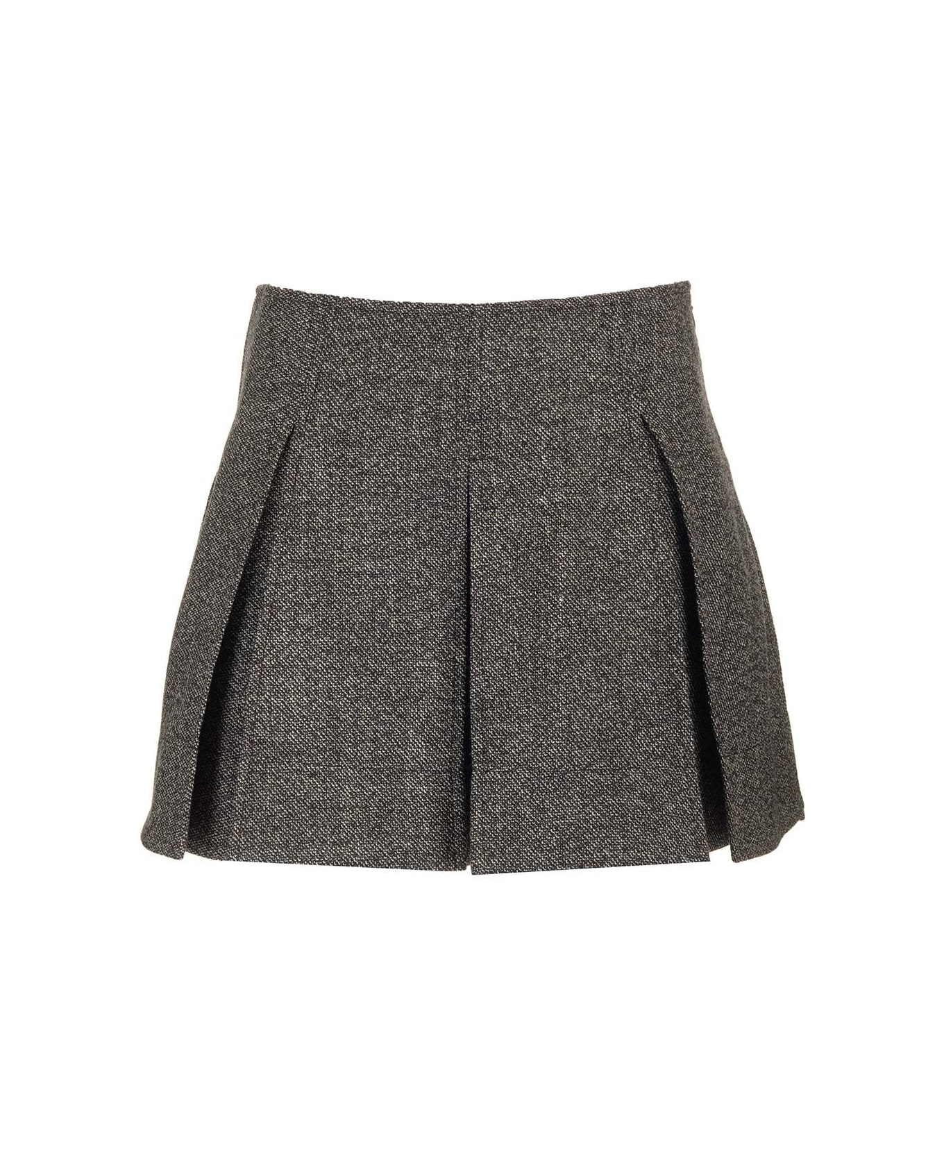 Pleated mini skirt in dark gray melange wool from Durazzi Milano.