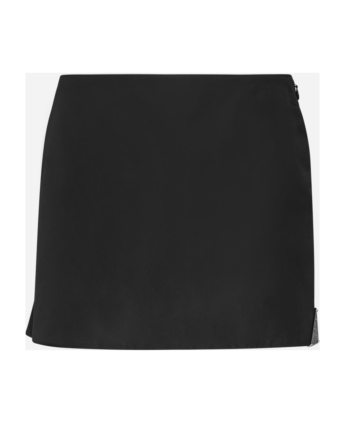 Prada's black Re-Nylon miniskirt featuring a low-waisted cut, side zip fastening, side splits and triangle logo plaque at the hem. Composition: 100% recycled polyamide