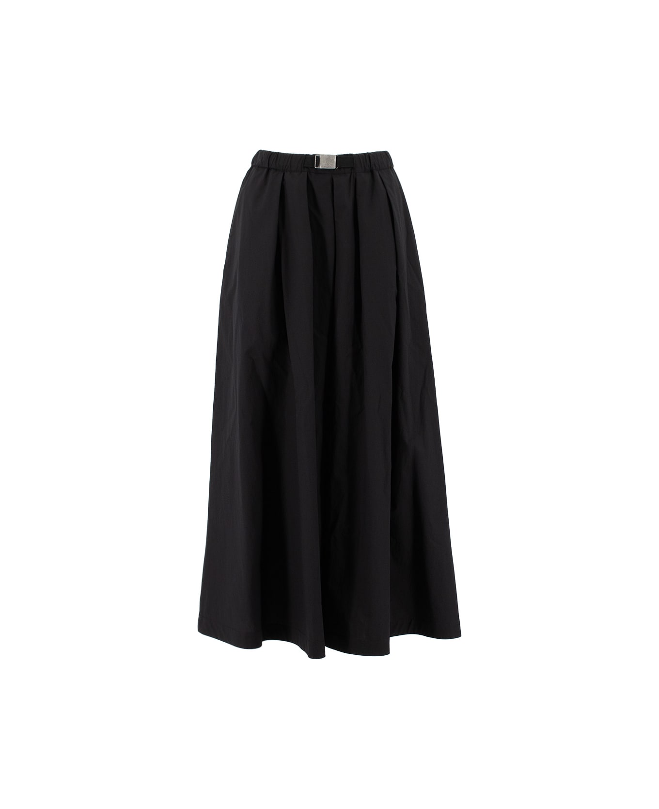 Texture and a versatile and feminine silhouette elevate the style of the long skirt with its linear design, characterised by the elastic waistband and enriched by the shiny jewel covering the buckle. Composition: 100% CO