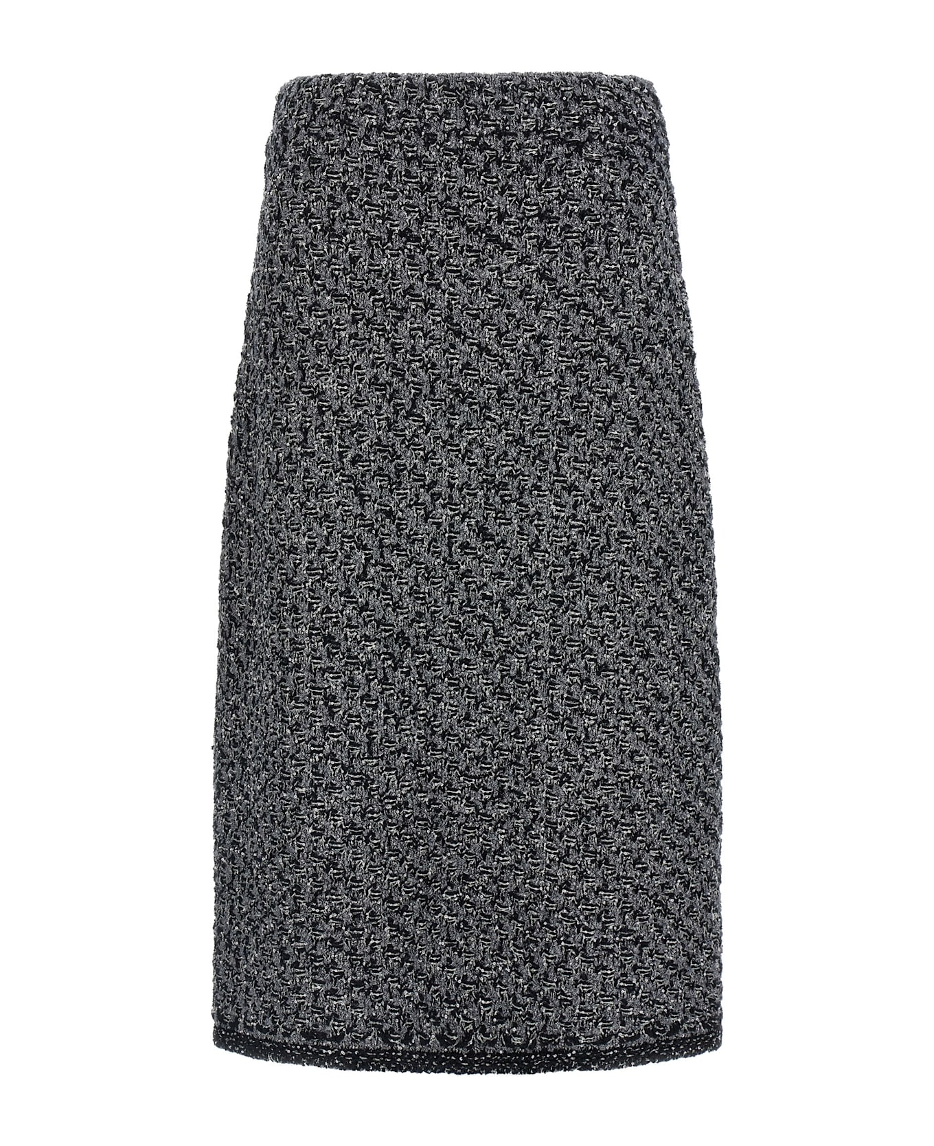 Midi skirt in Tweed denim effect with micro sequins, trapezoid model slightly flared at the bottom, elastic waistband. Composition: 77% cotton 14% polyamide 9% polyester
