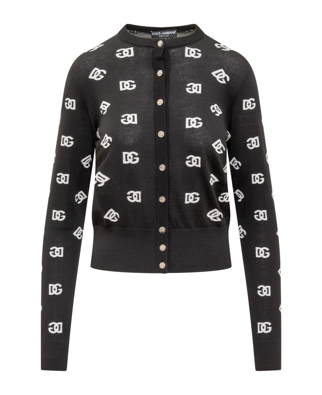 Cardigan with long sleeves. Crew neck. Ribbed collar, hem and cuffs. Closure with logoed buttons. DG monogram pattern in all-over jacquard. Composition: 81% Virgin Wool, 19% Silk