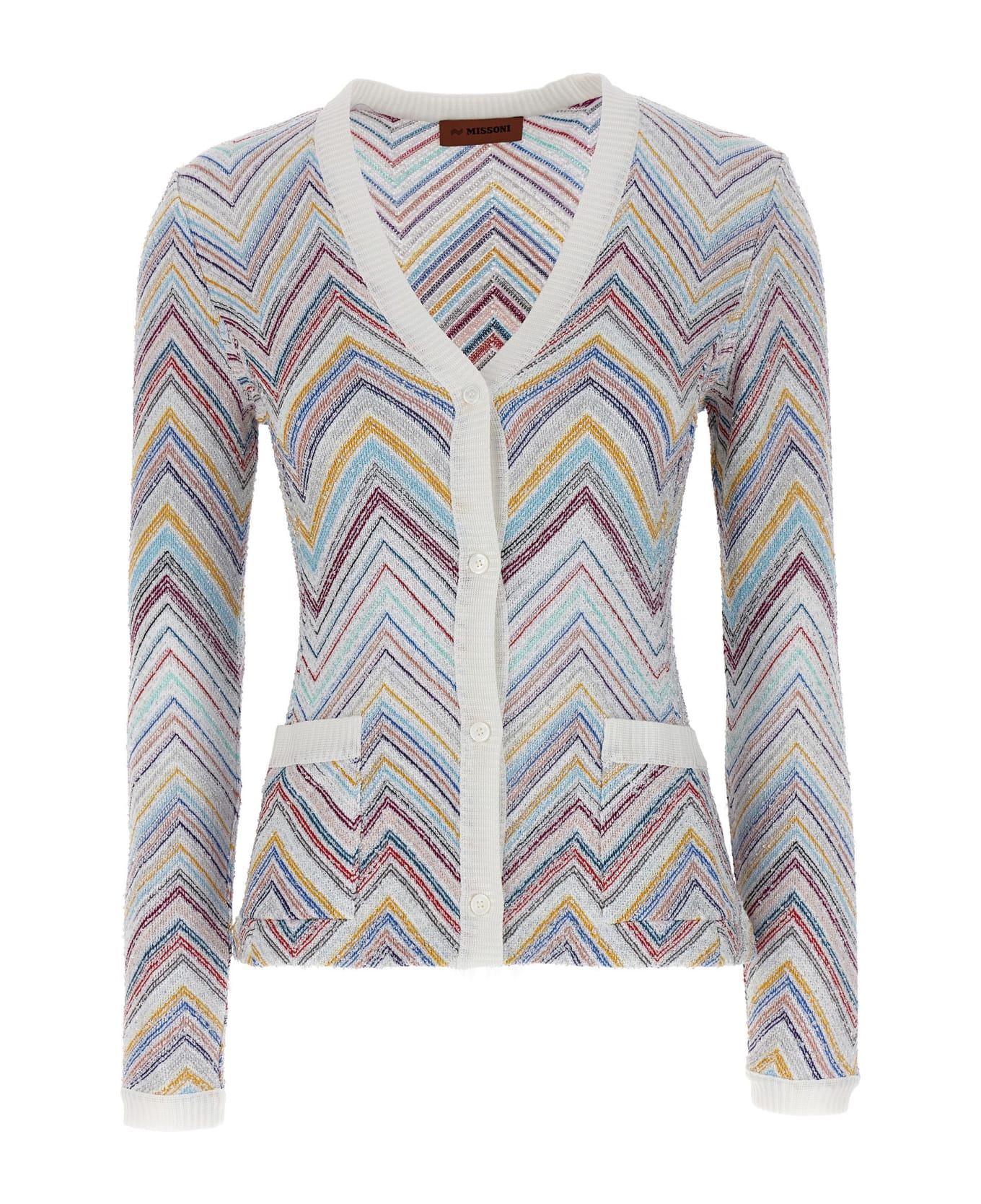 Cardigan with zigzag and sequin pattern, V-neck, button closure and pockets.