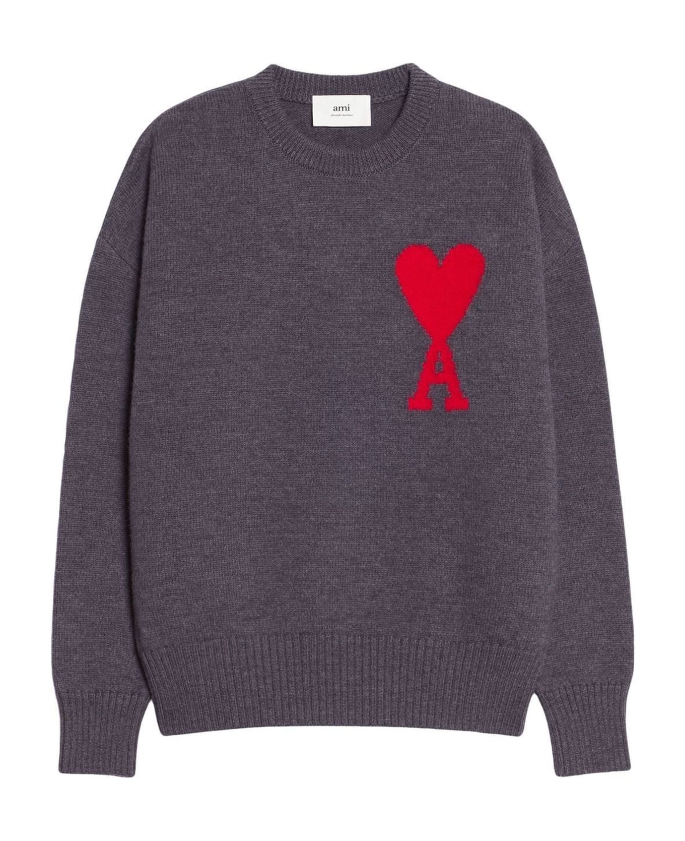Grey virgin wool jumper, signature Ami de Coeur monogram motif, intarsia-knit logo, crew neck, long sleeves, straight hem, ribbed trim Composition: Virgin Wool, 100%