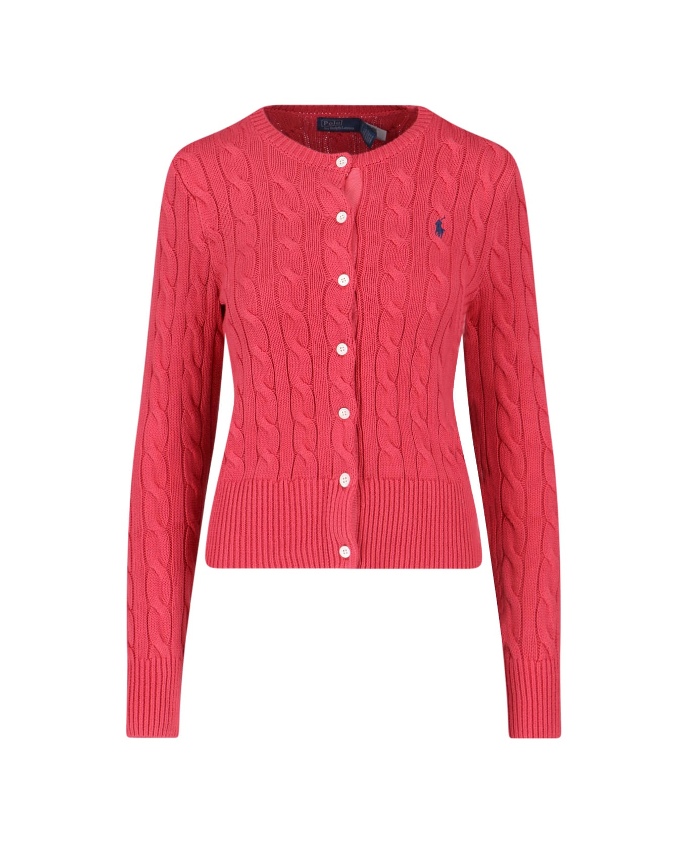 Polo Ralph Lauren logo cardigan in red cotton, crew neck, long sleeves, button closure, embroidered logo on the front.