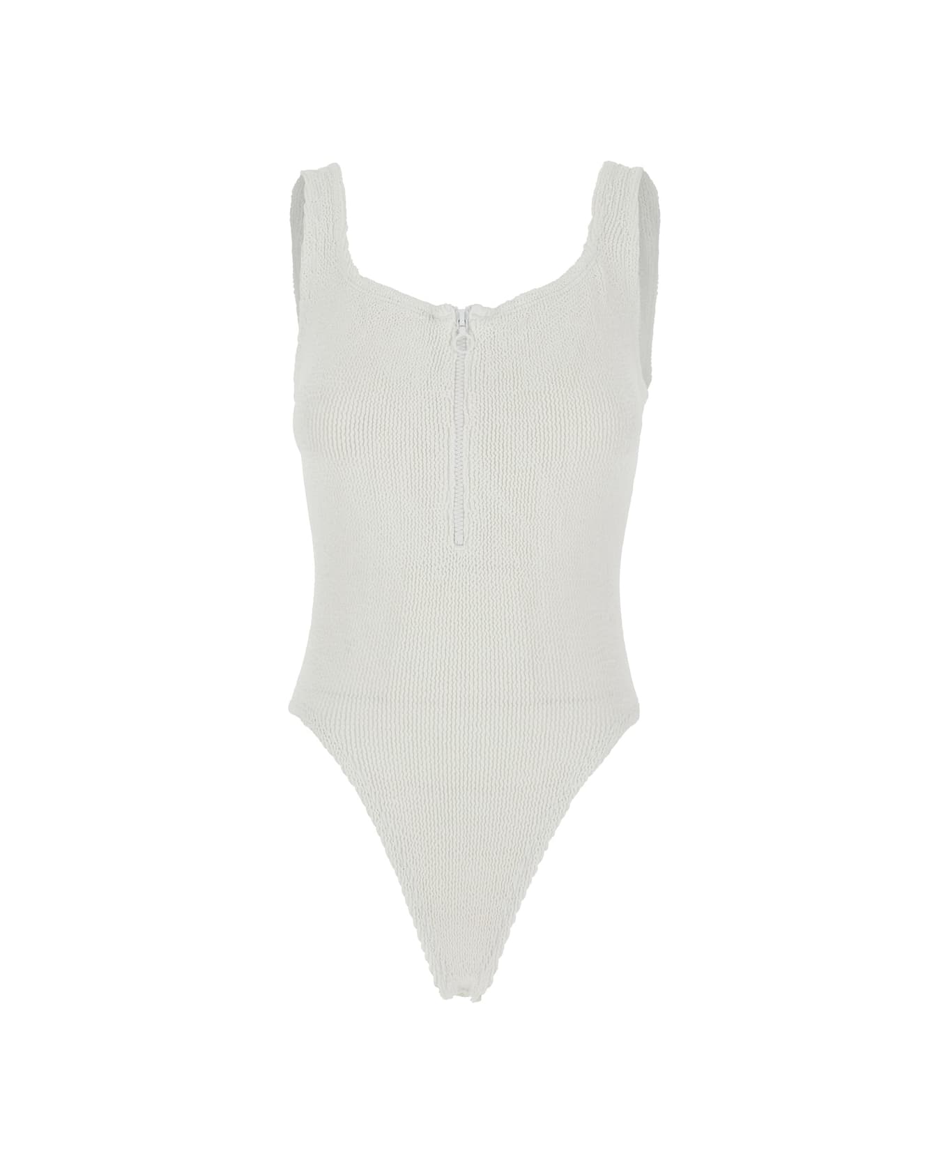 'dallas' White One-piece Swimsuit With Thin Straps And Front Zip In Stretch Tech Fabric Woman