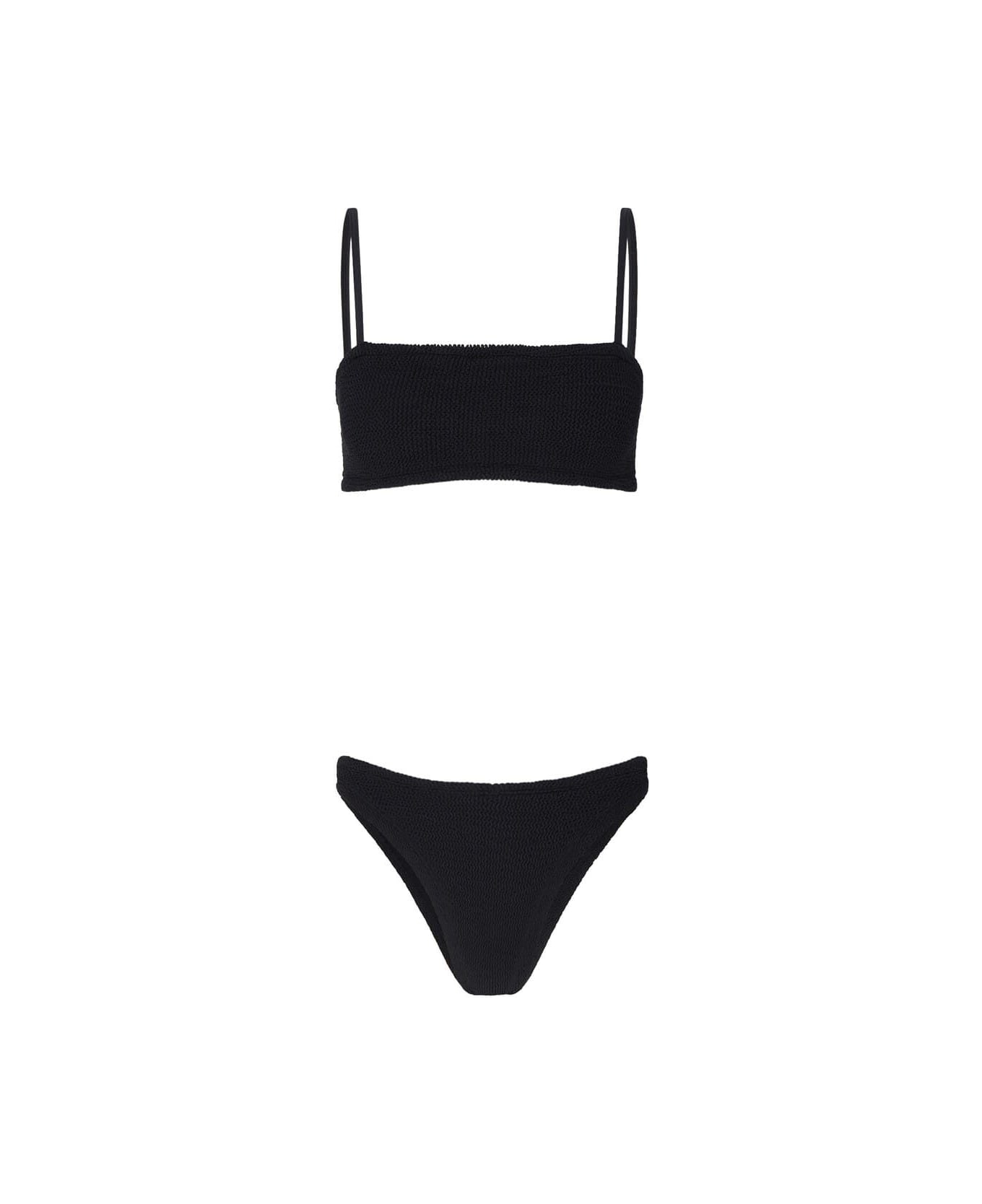 "Gigi" Bikini by Hunza G with barely-there spaghetti straps. Lighter colours may appear translucent when wet. Neon colours may fade over time. This is not a manufacturing defect. The ingenious Original Crinkle fabric is designed to flex and sculpt to your body, which is why all Hunza G items are made in one size only.