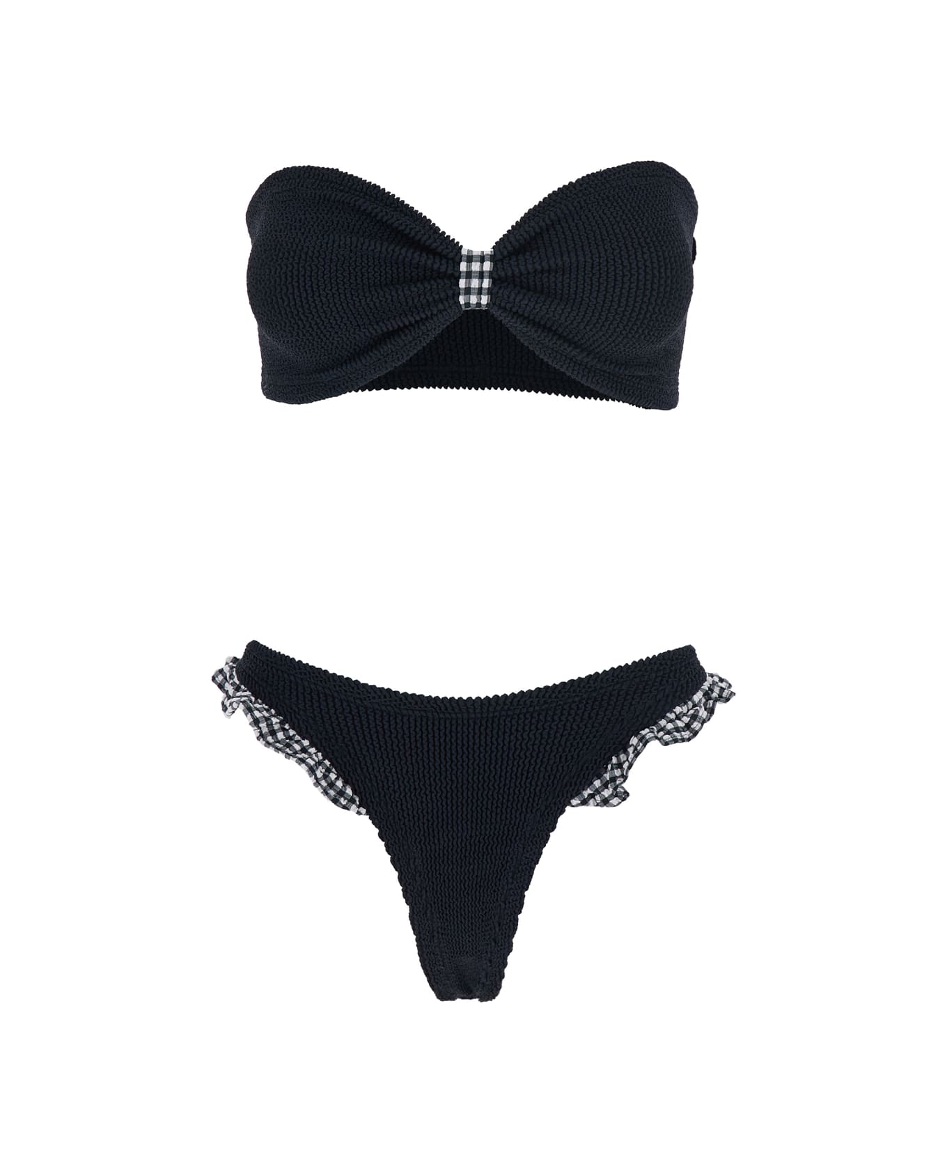 'jean' Black Bikini With Bandeau Design And Check Embellishments In Tech Fabric Stretch Woman