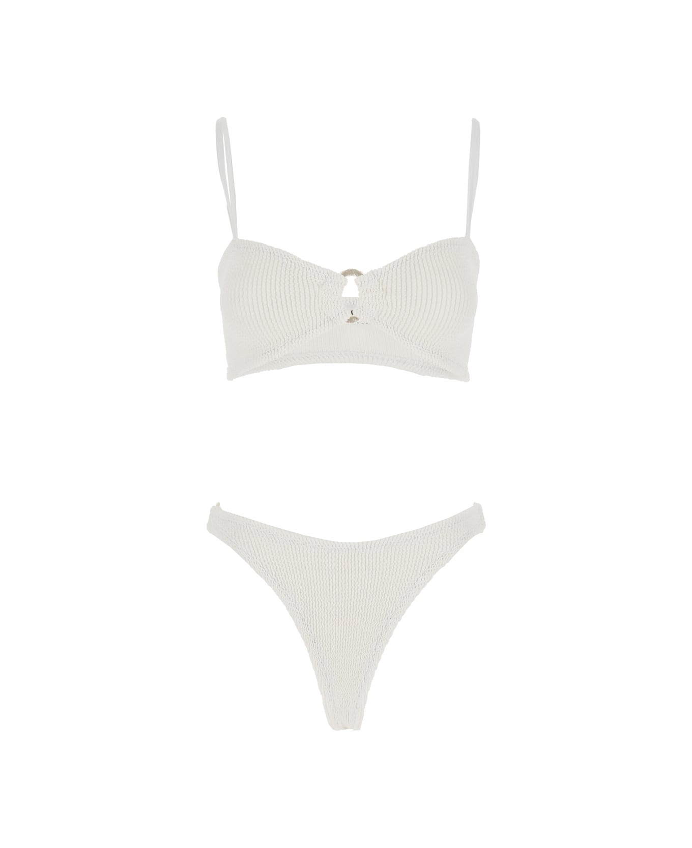 'misty' White Bikini With Fixed Spaghetti Straps And Cut-out With Ring In Tech Fabric Stretch Woman