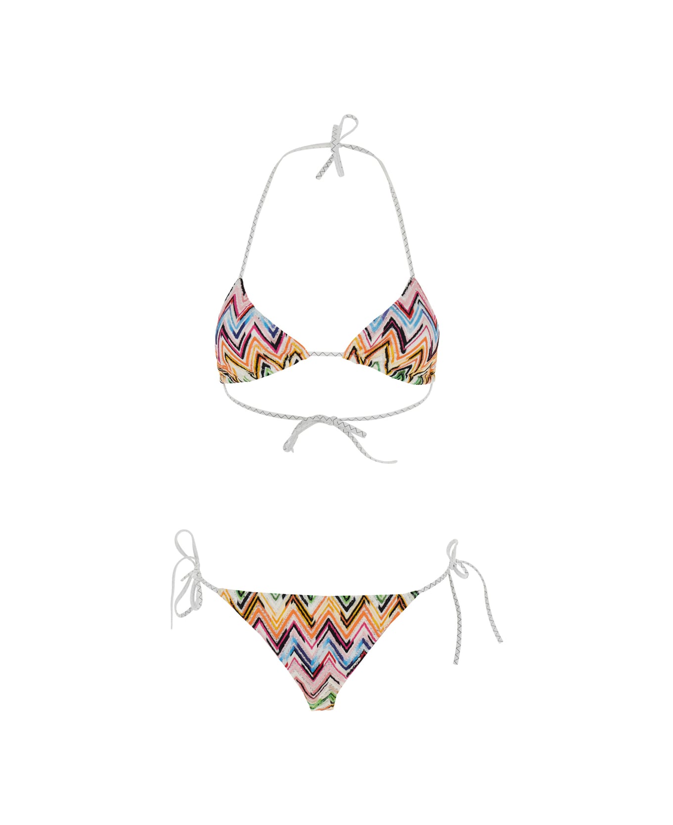Multicolor Bikini With Adjustable Tie Closure And All-over Zigzag Motif In Viscose Blend Woman