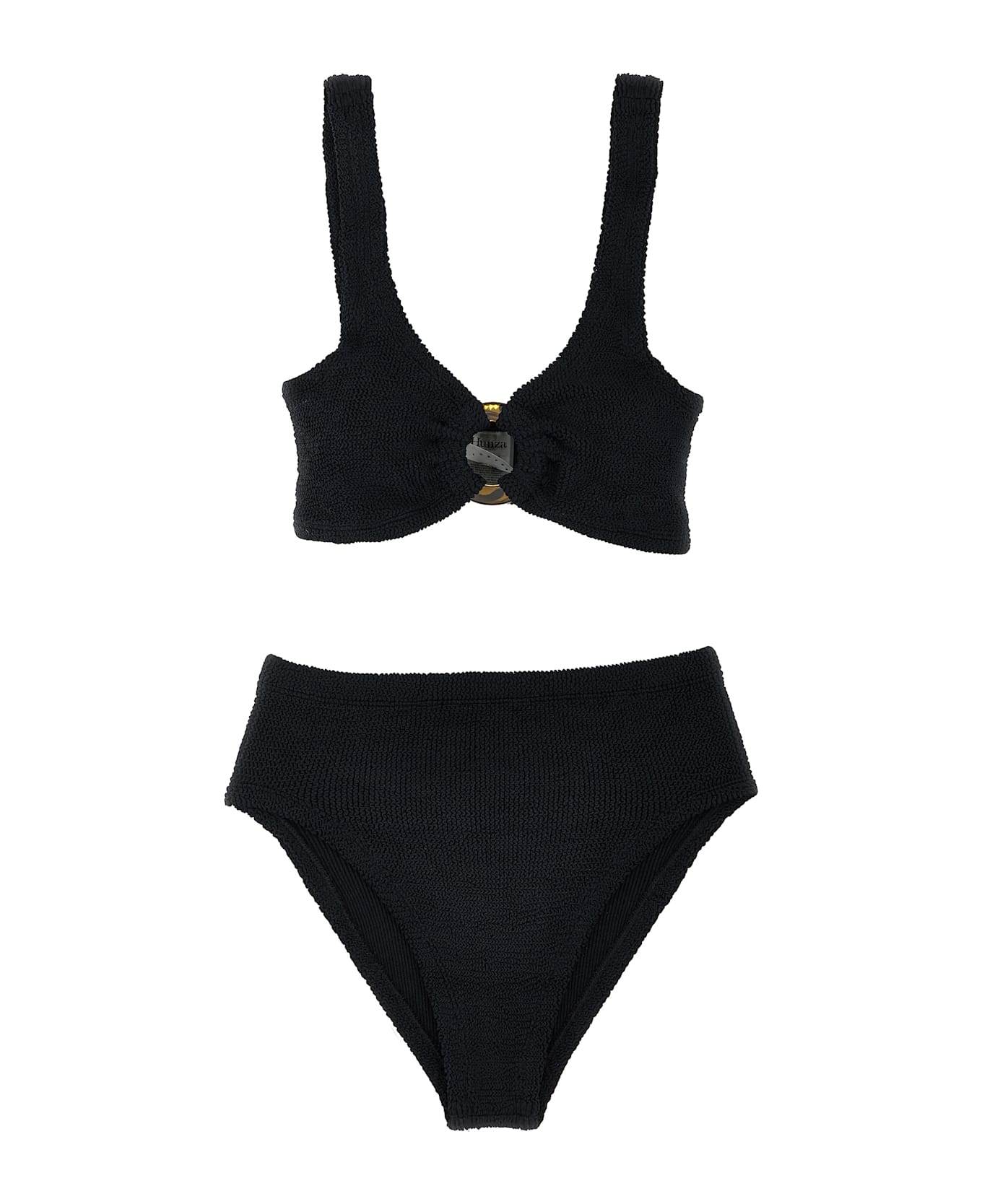 Nadine' seamless crinkle fabric bikini with bra with resin hook detail and regular briefs.