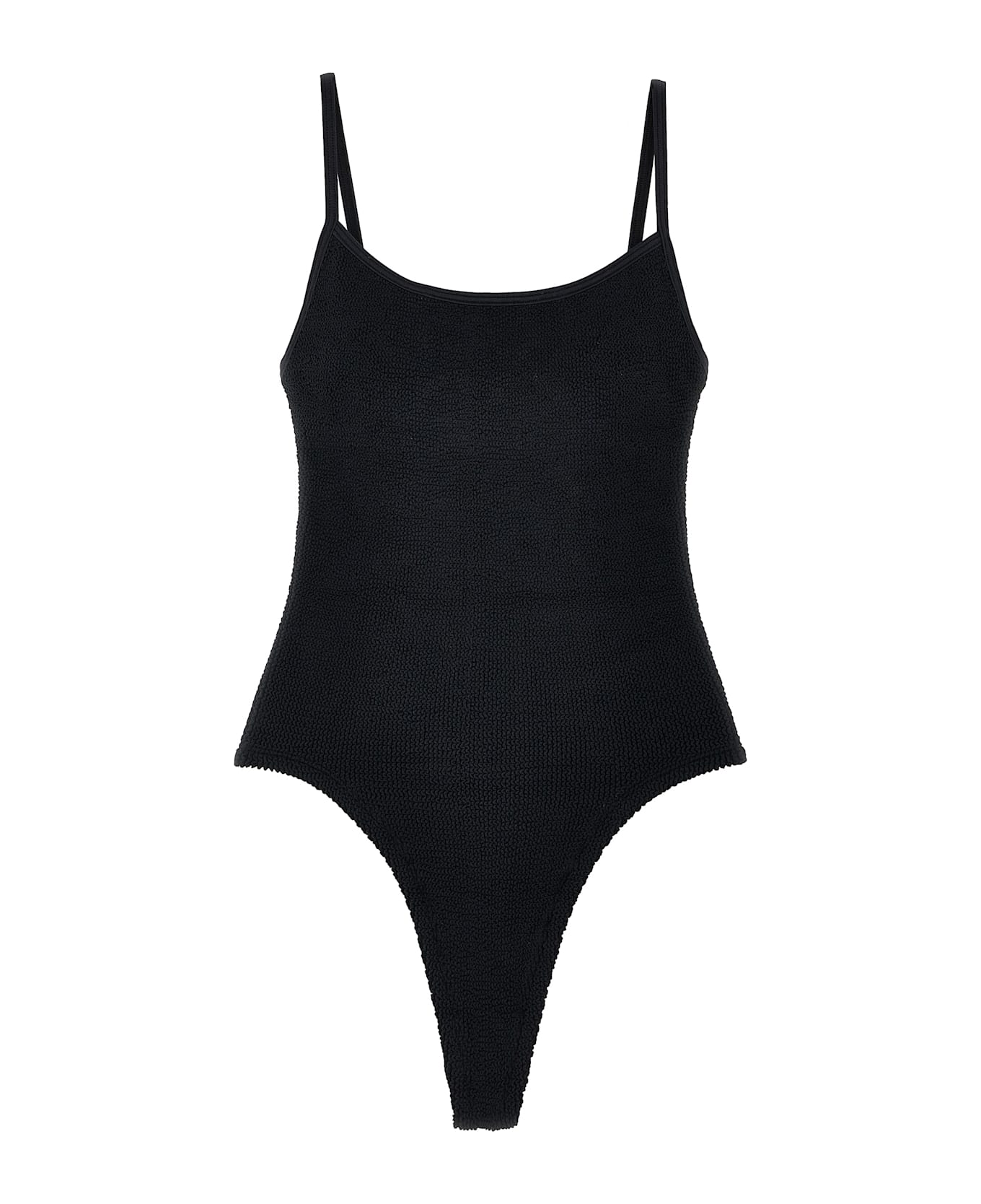 'Petra Swim' one-piece swimsuit in The Original Crinkle ' fabric with thin straps, lightweight breast support, high-cut design.