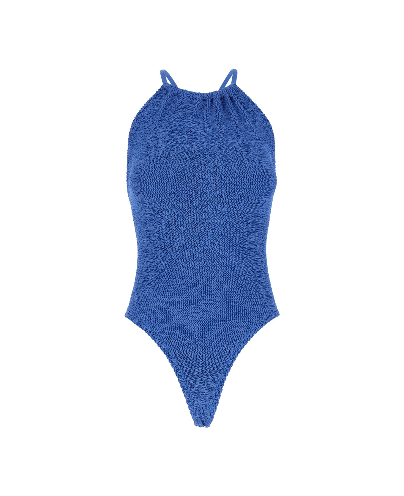 'portia' Blue Swimsuit With Criss-crossed Straps On The Rear In Tech Fabric Woman